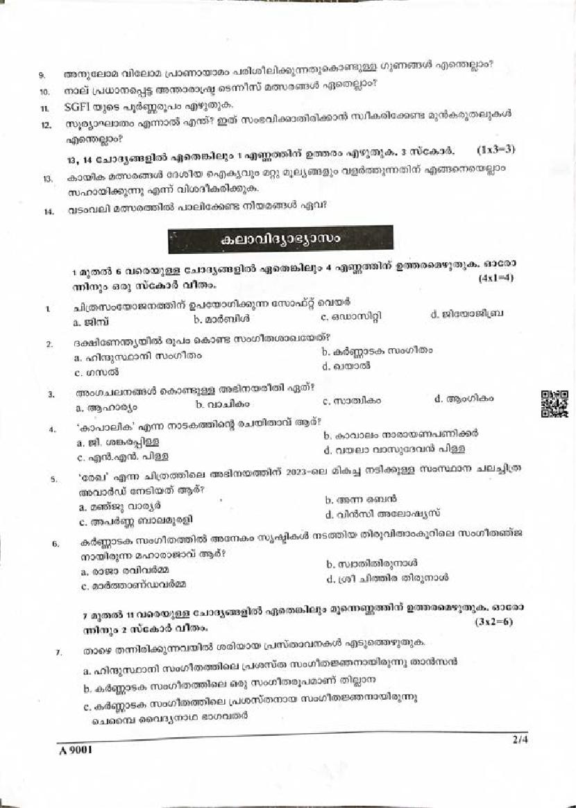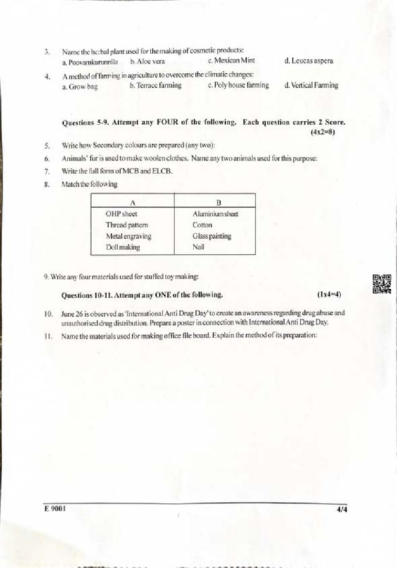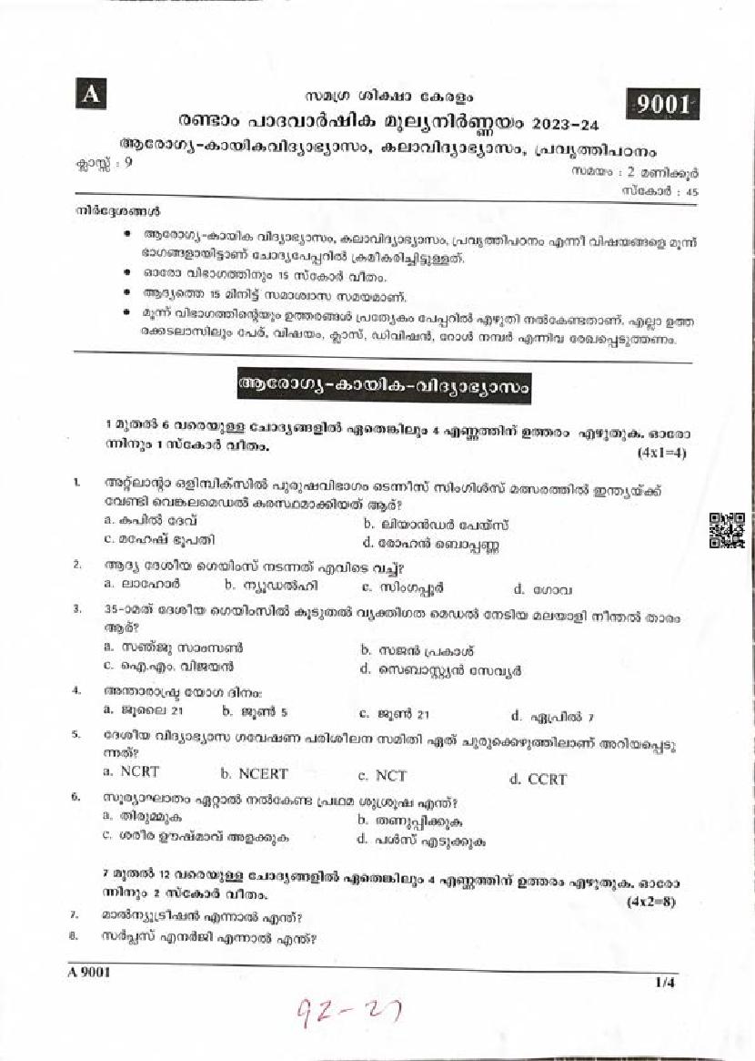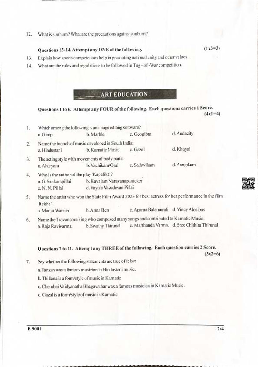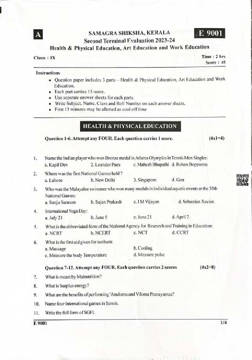 | Paper Here | Kerala Class 9 Second Terminal Exam Health & Physical Education, Art And Work Education Question Paper |