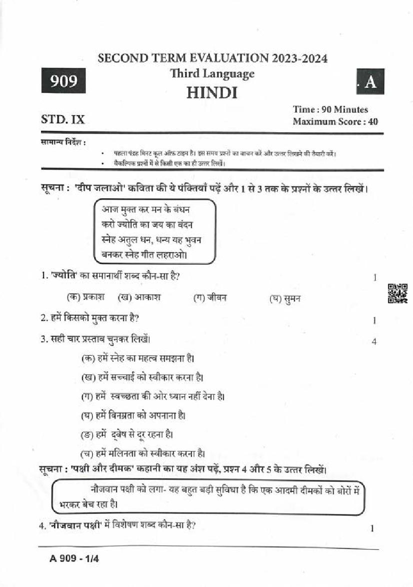 Kerala Class 9 Second Term Question Paper 2023 Hindi View Download