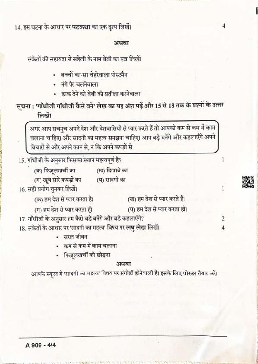 Class 9 Hindi Christmas Exam Question Paper 2024