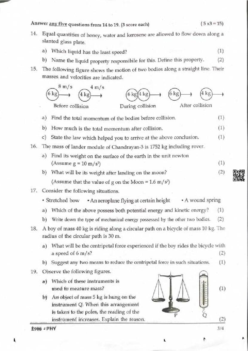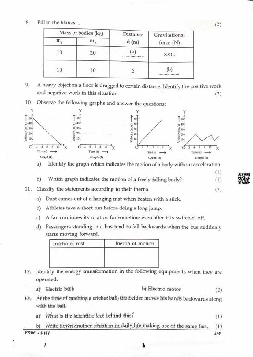 | Paper Here | Kerala Class 9 Second Terminal Exam Physics Question Paper |