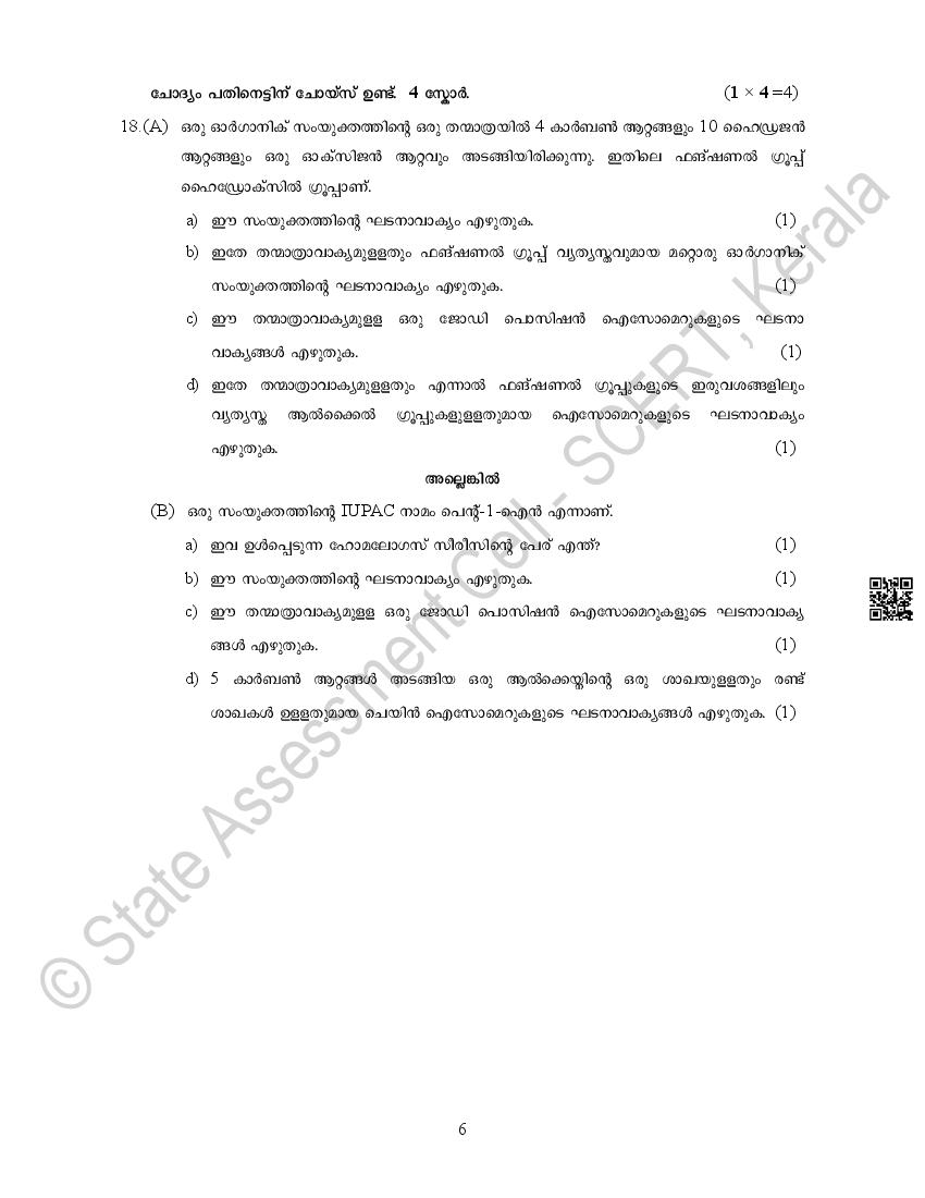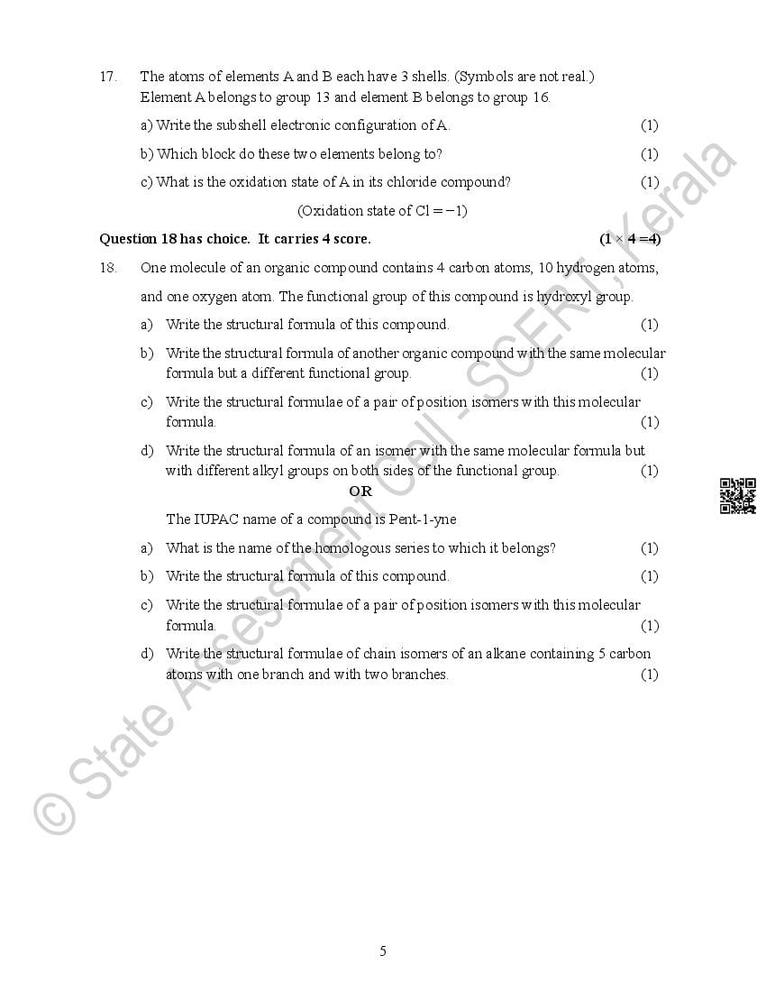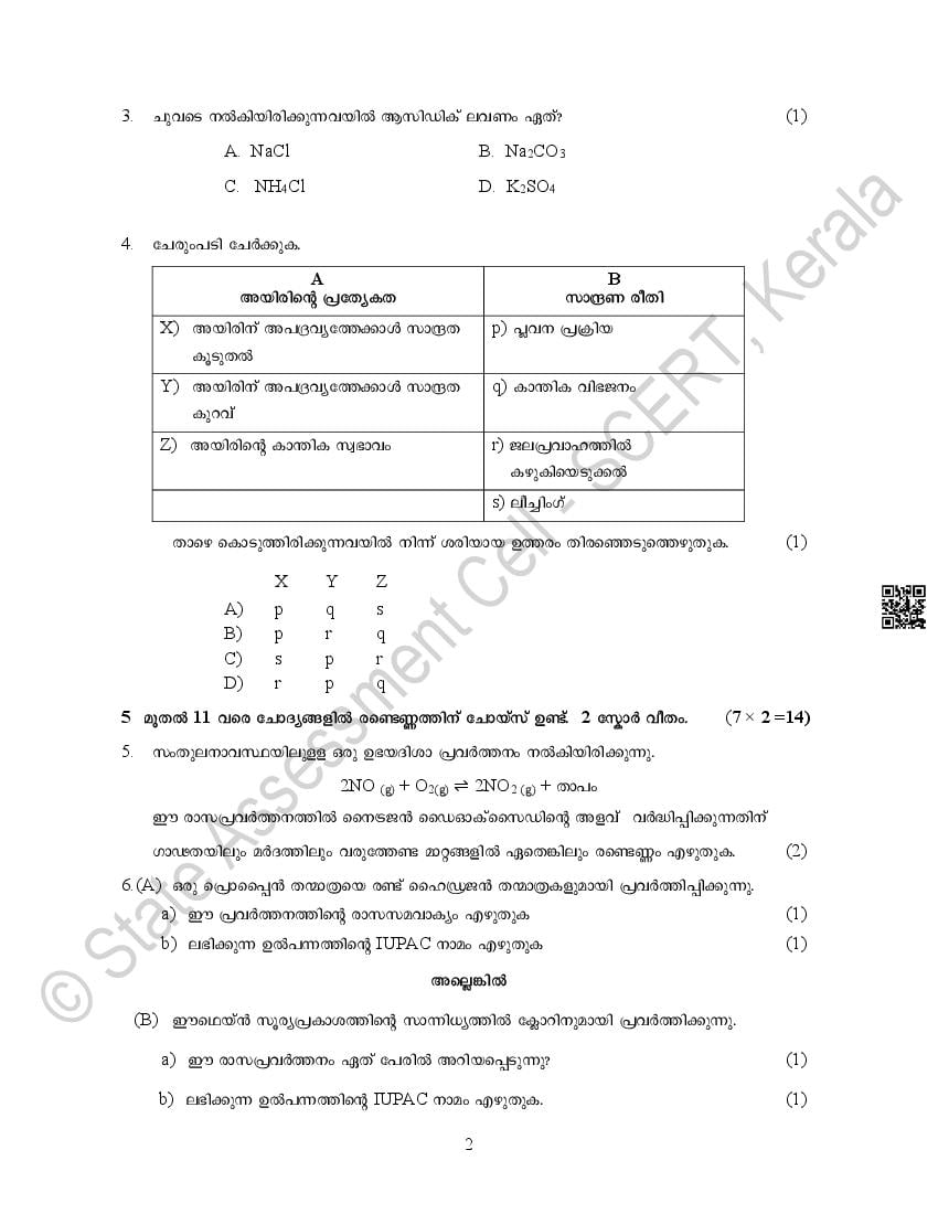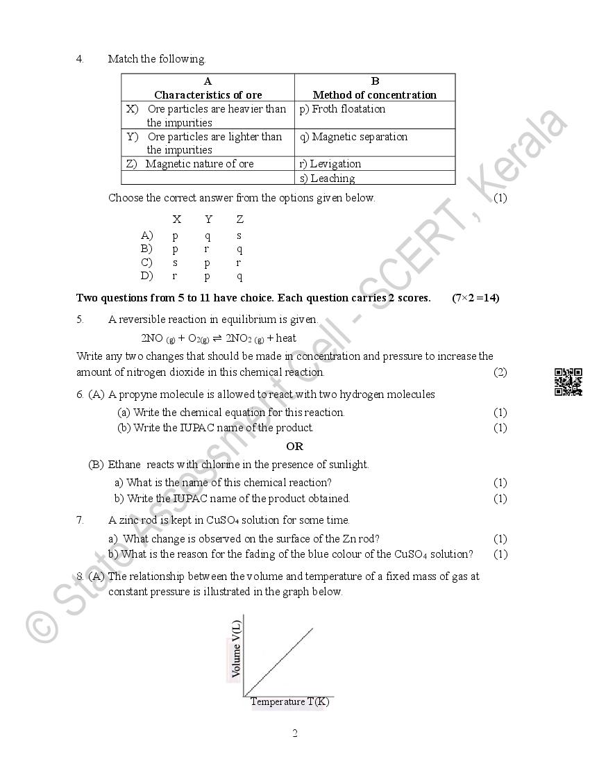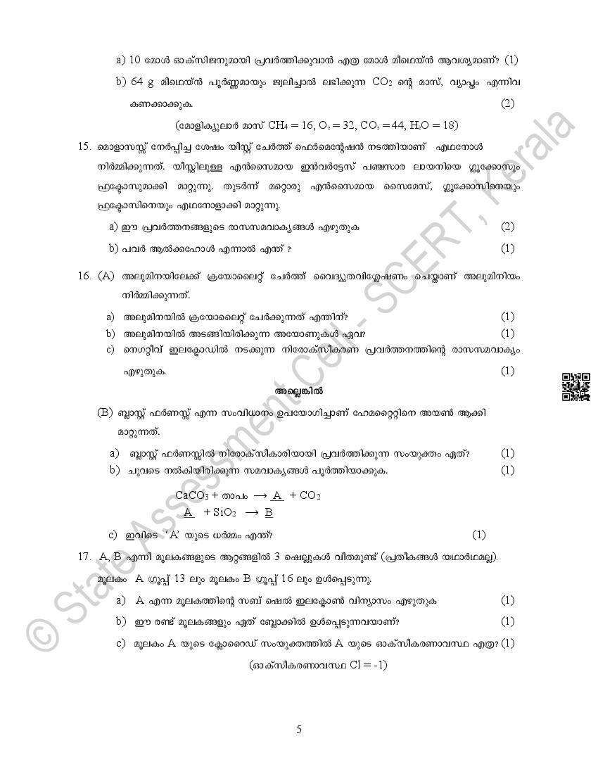 The Kerala Board Model Question Paper for class 10 SSLC Chemistry is as follows.