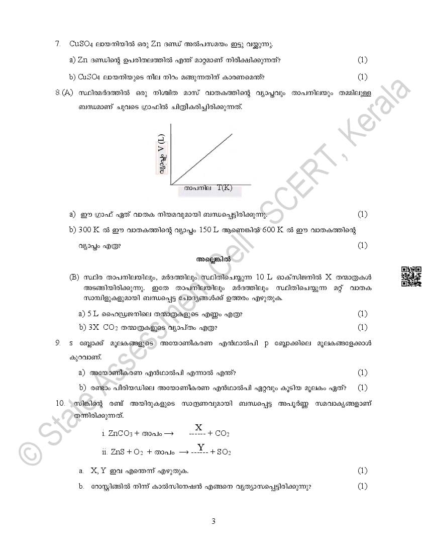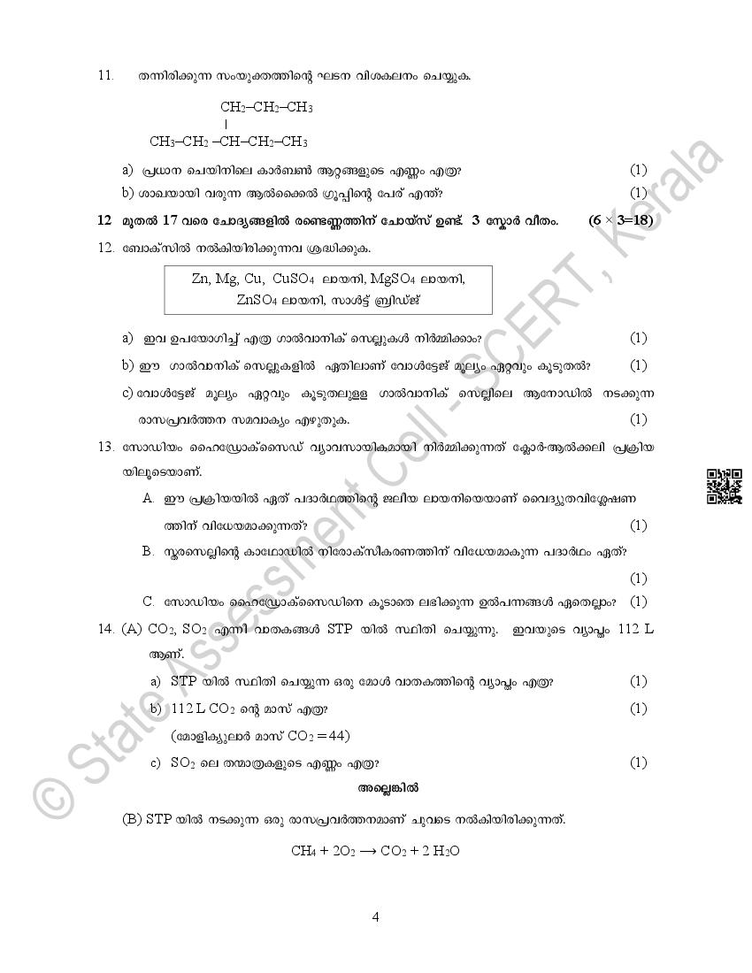| Study Material Here | Kerala Sample Paper for Class 10 Chemistry |