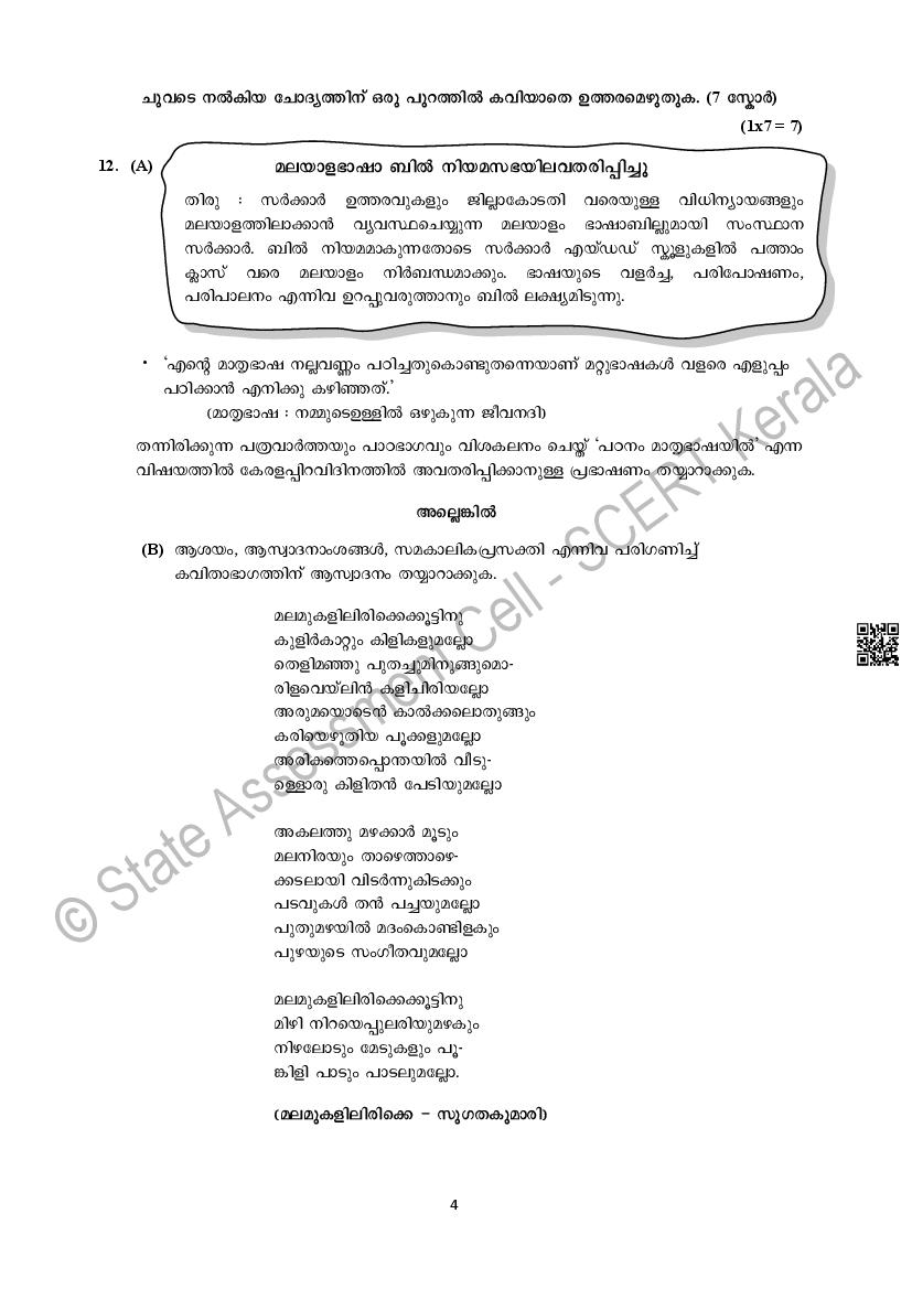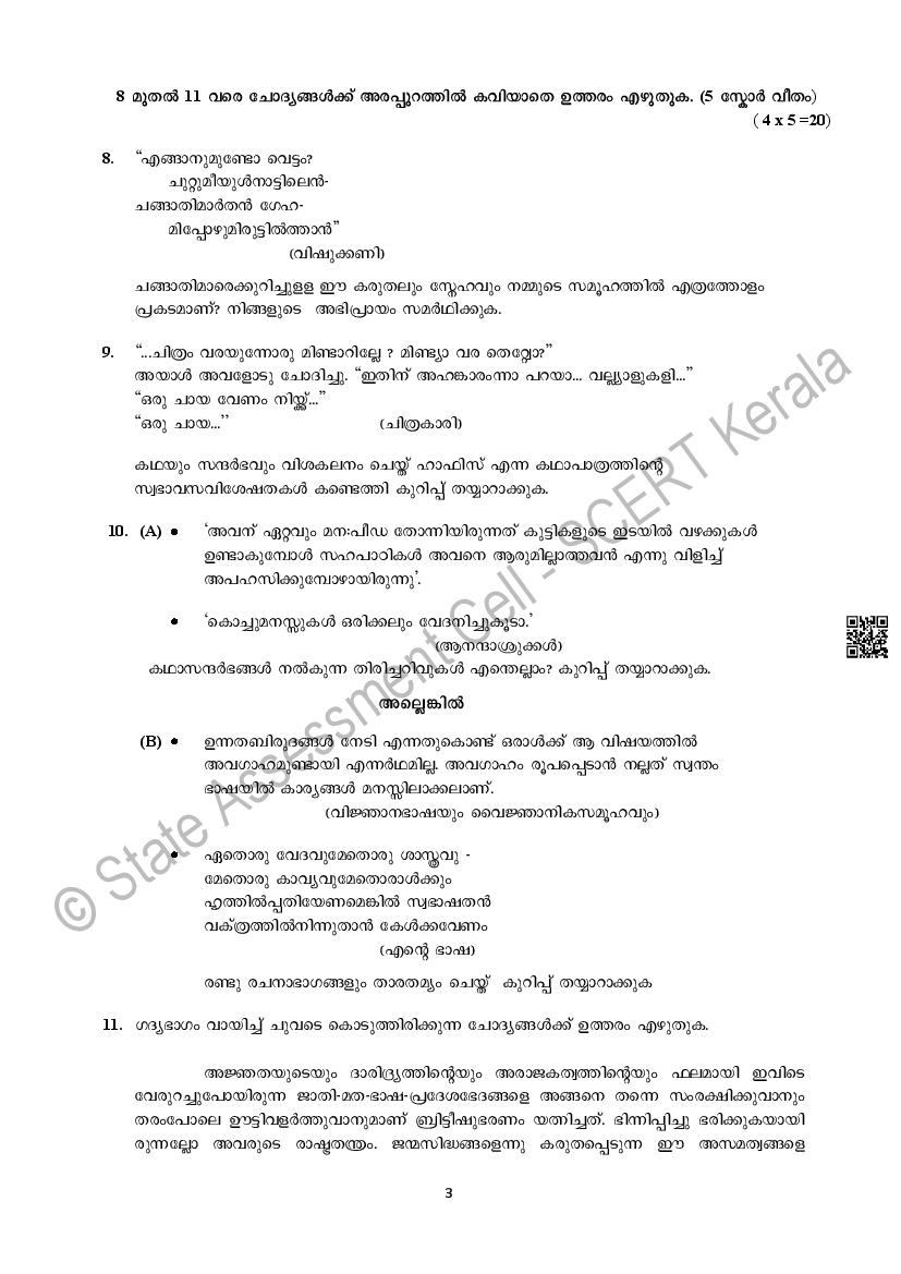 | Study Material Here | Kerala Sample Paper for Class 10 Malayalam |