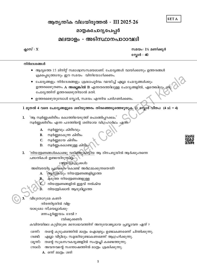 If you have any queries on Kerala SSLC Malayalam Model Paper 2026, then please ask in comments below.
