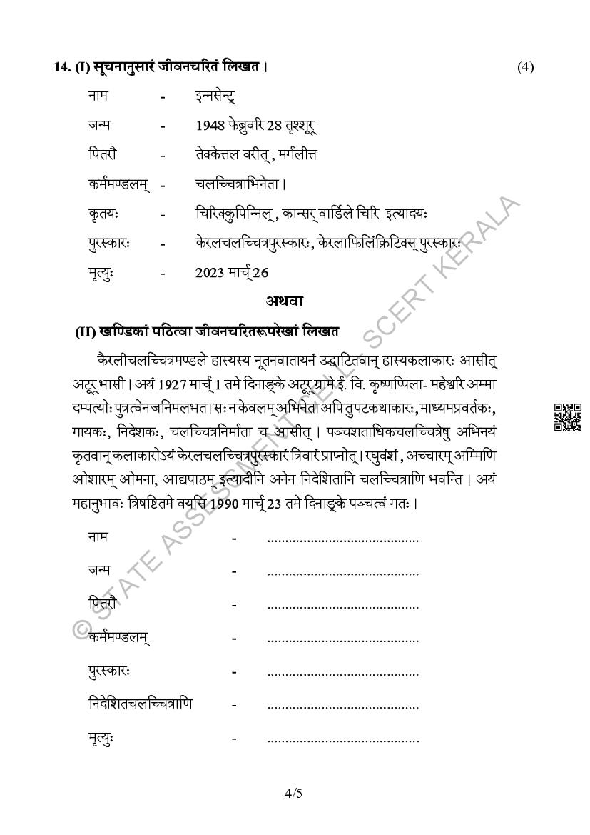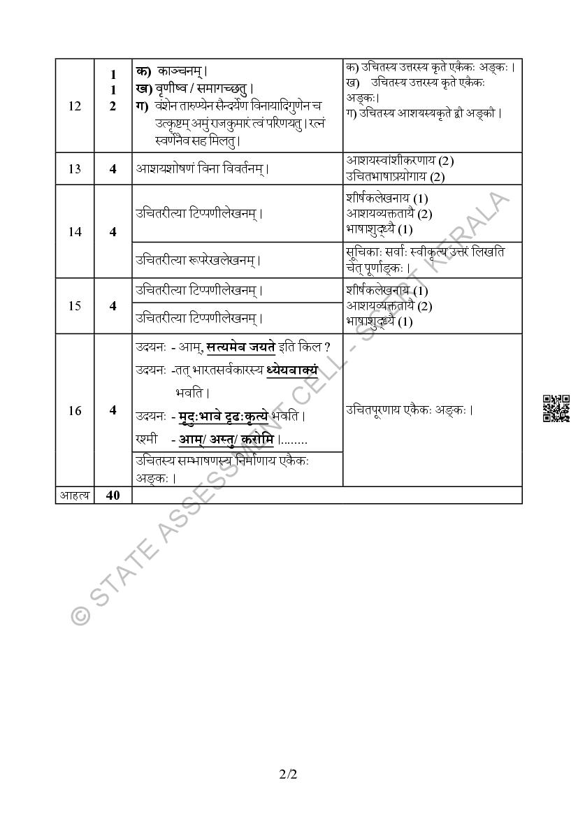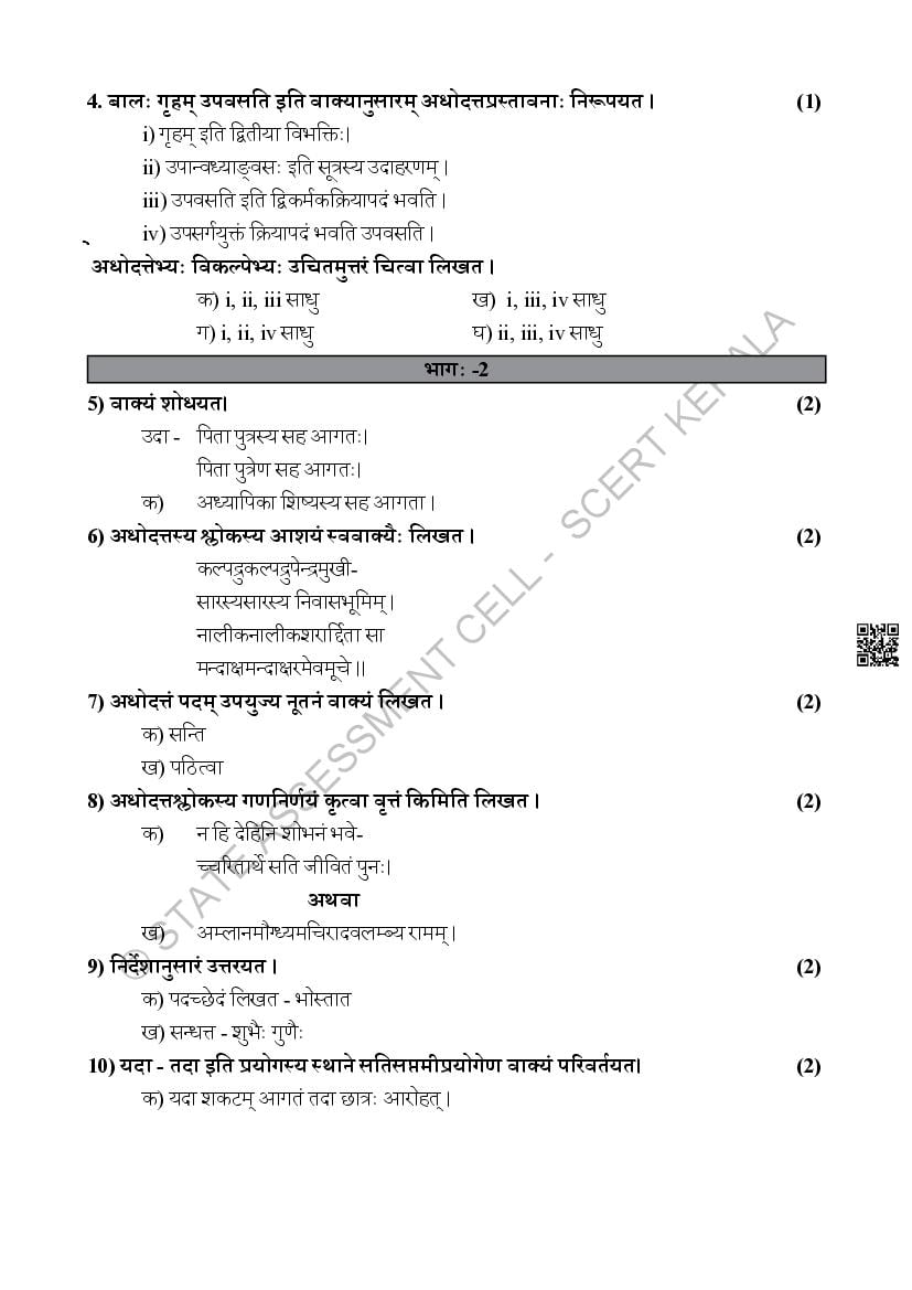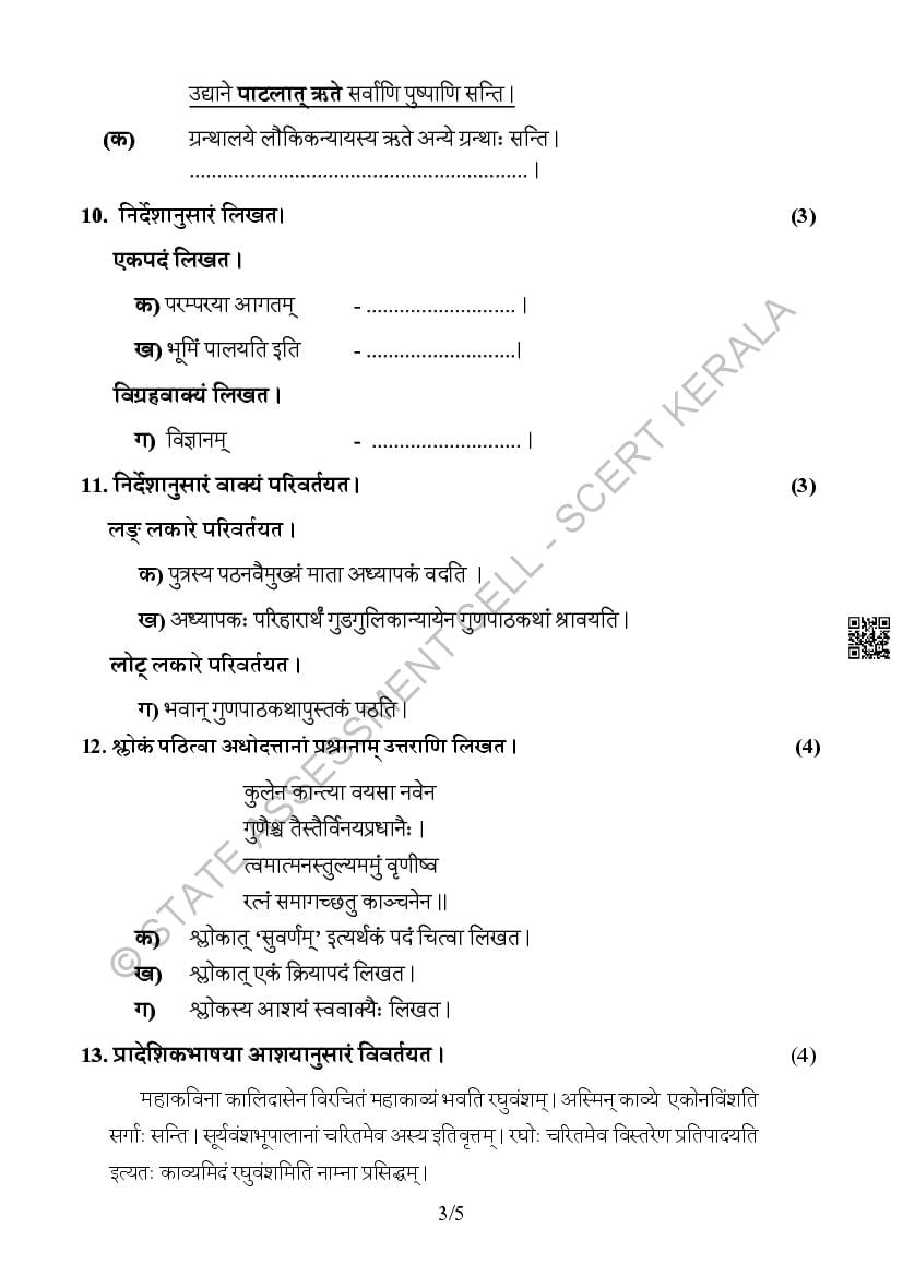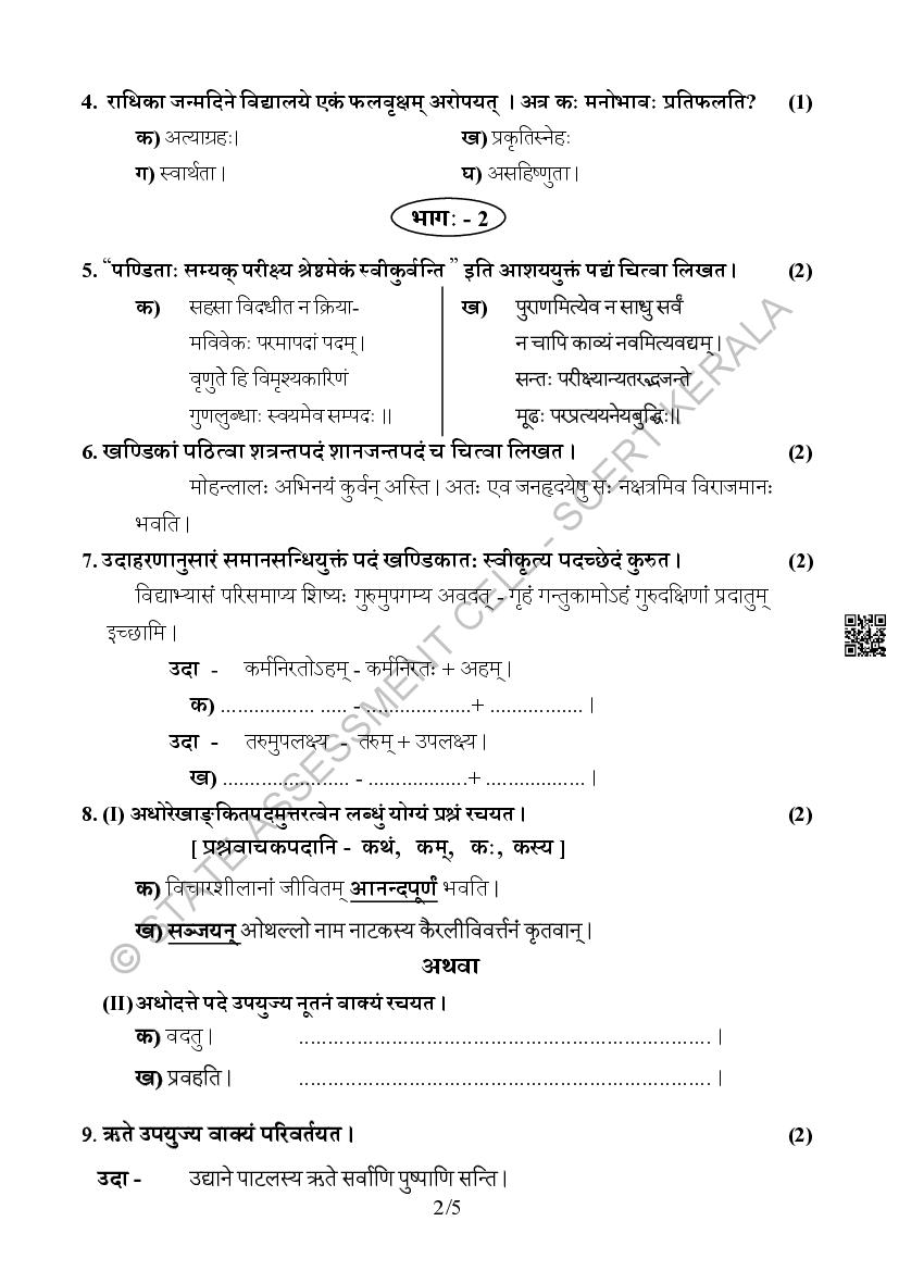 The Kerala Board Model Question Paper for class 10 SSLC Sanskrit is as follows.