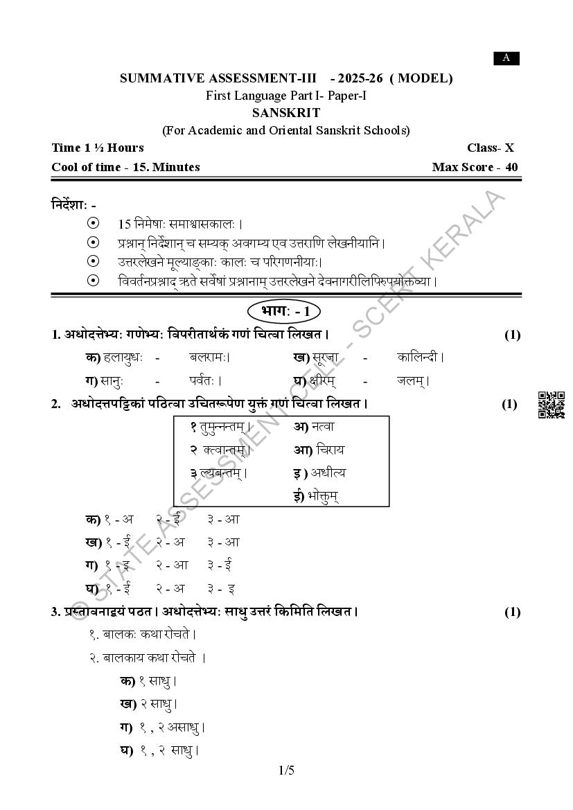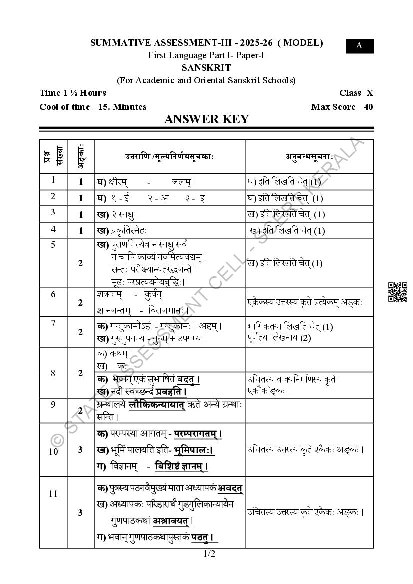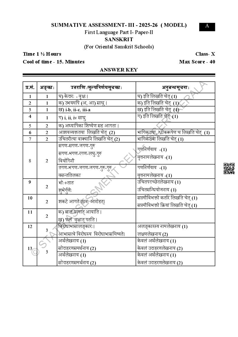 Kerala SSLC Sanskrit Model Paper 2026
