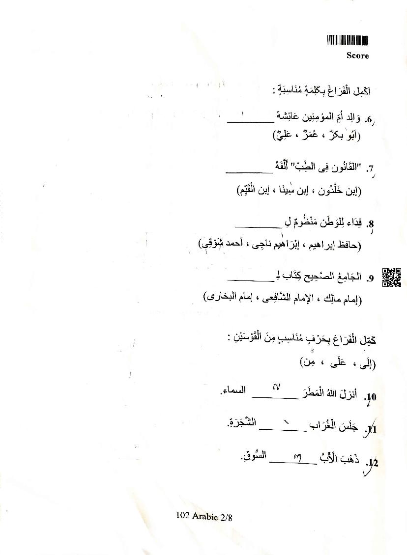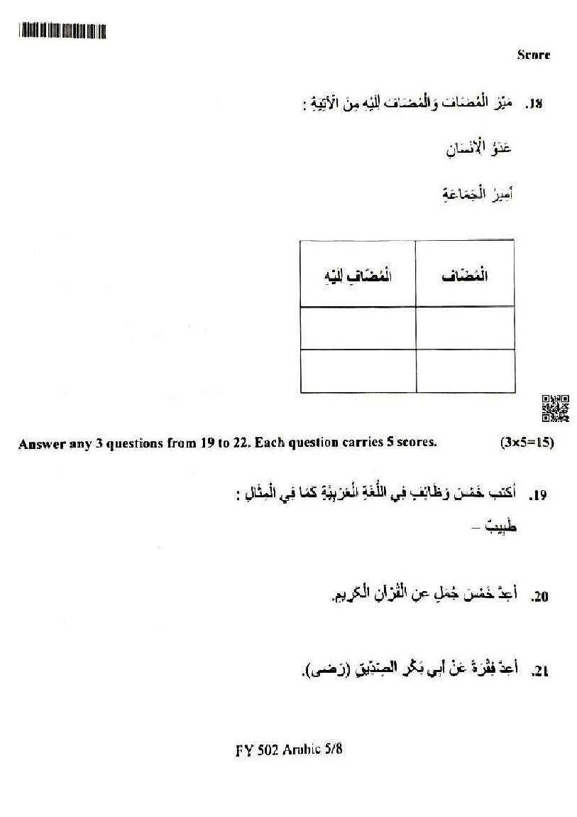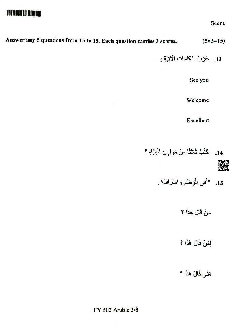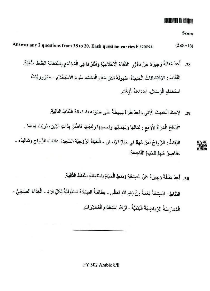 | Study Material Here | Kerala Model Exam Question Paper of Plus One Arabic |