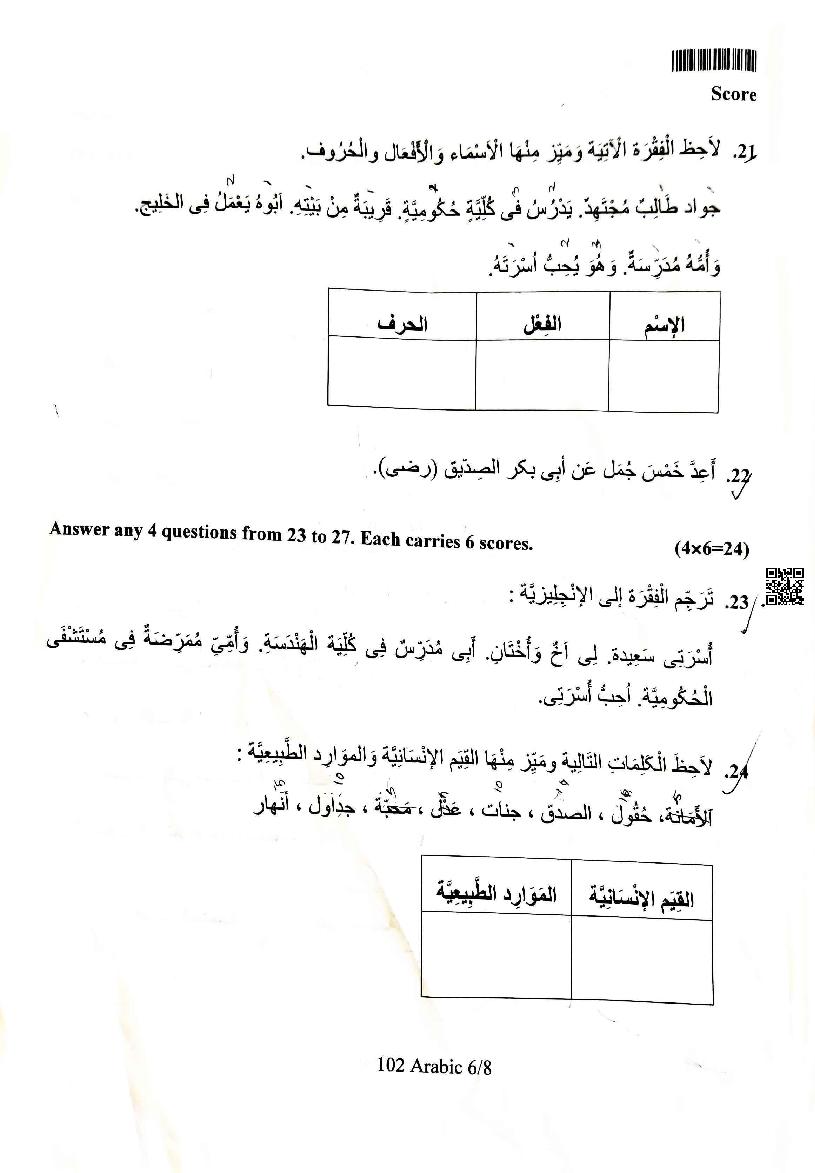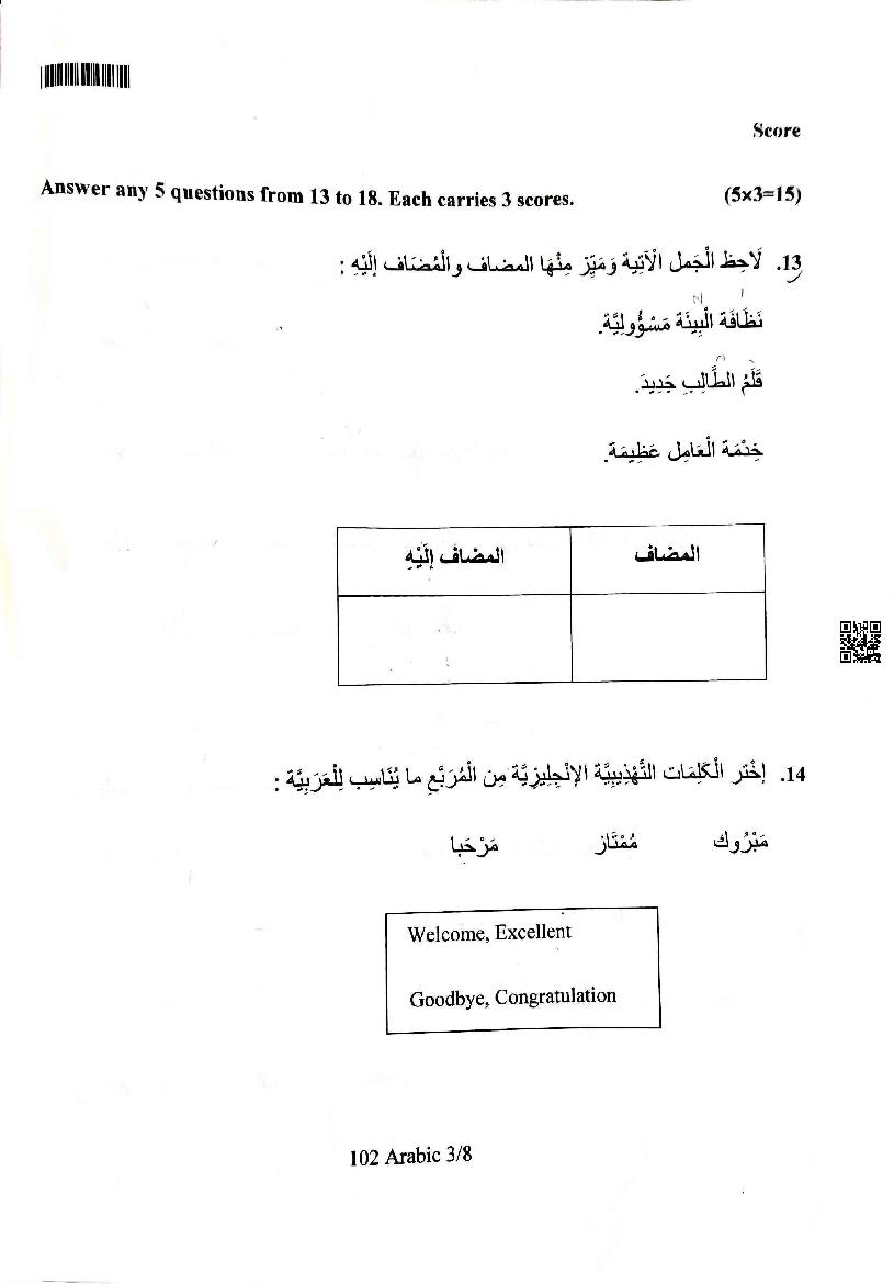 Kerala Plus One Model Exam Question Paper 2024 Arabic View Download