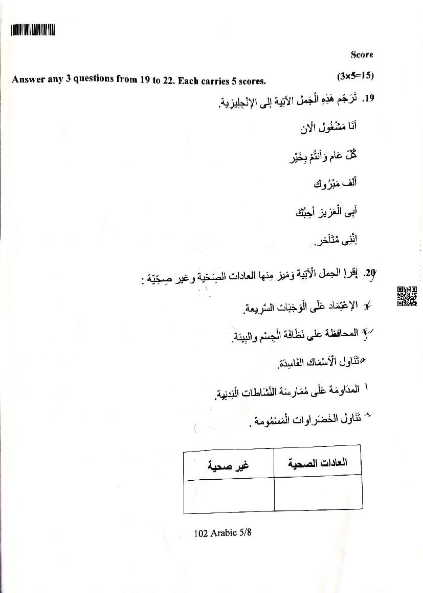 The Kerala Board Plus One Model Exam 2025 Question Paper of Arabic is as follows. This can also be used as a Kerala Sample Question Paper for Plus One class 11, for the Arabic subject test.