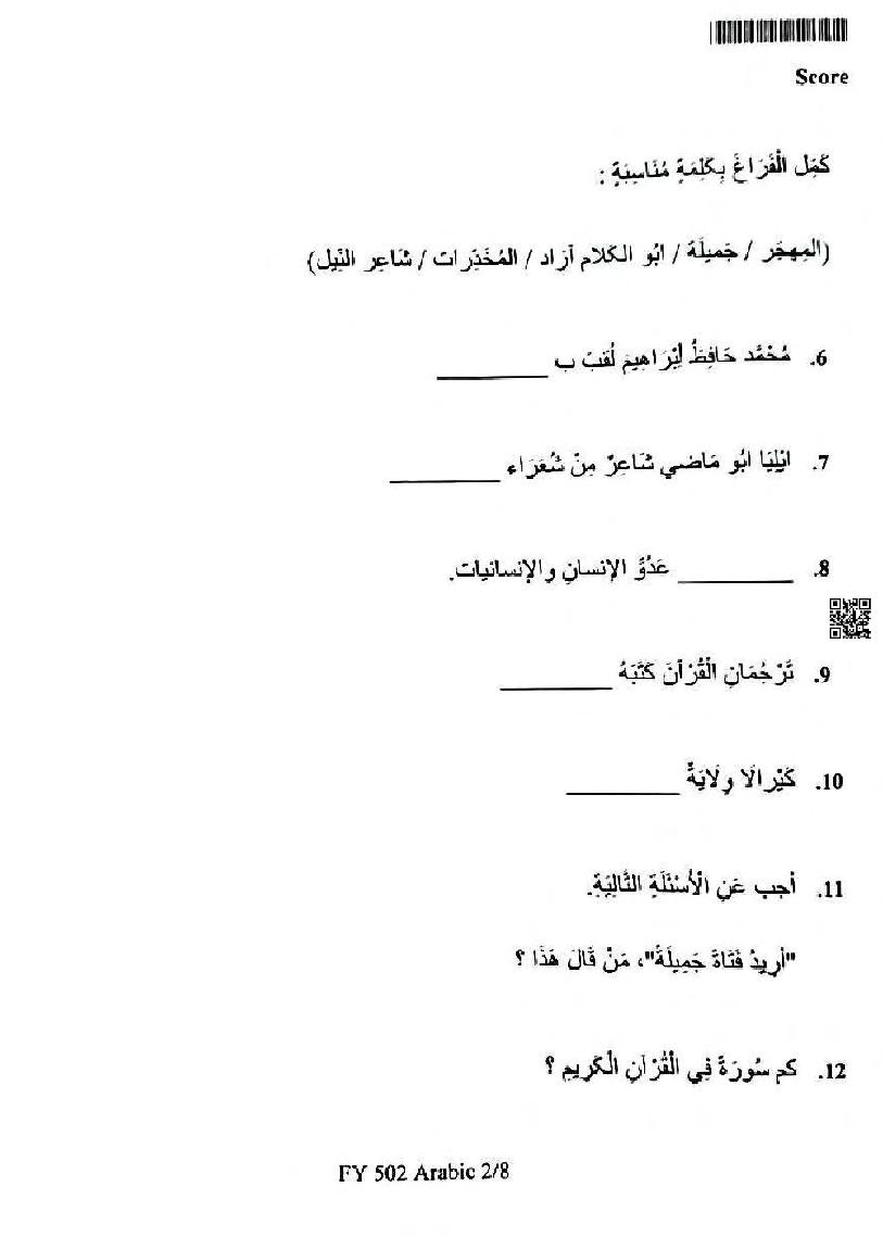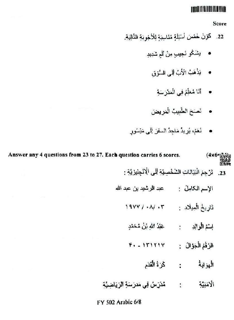 | Subject | Arabic |