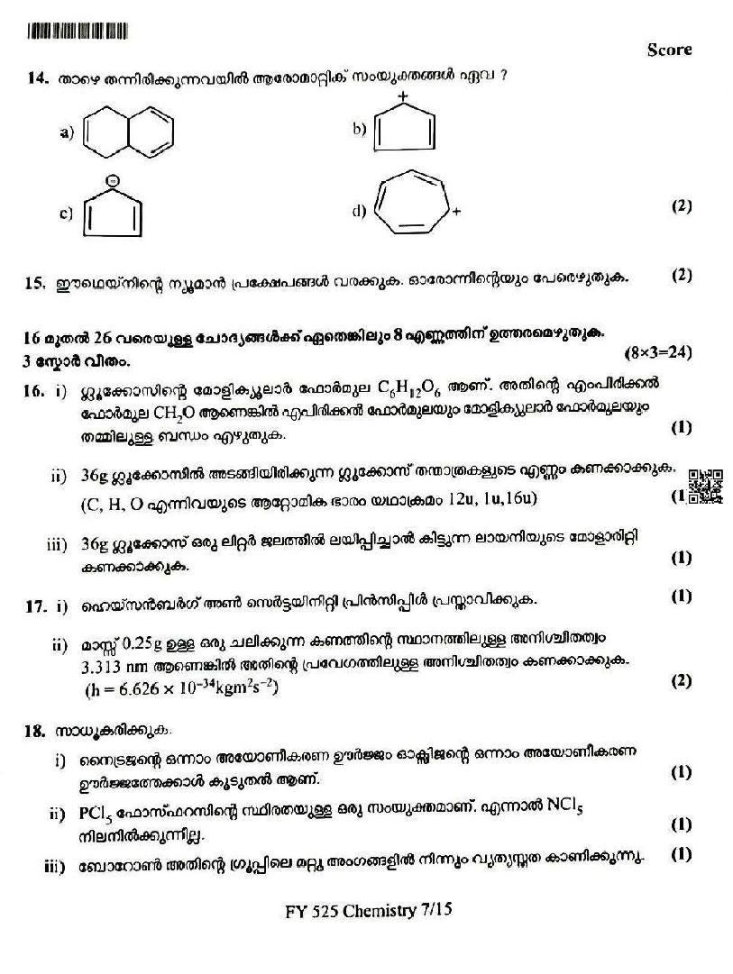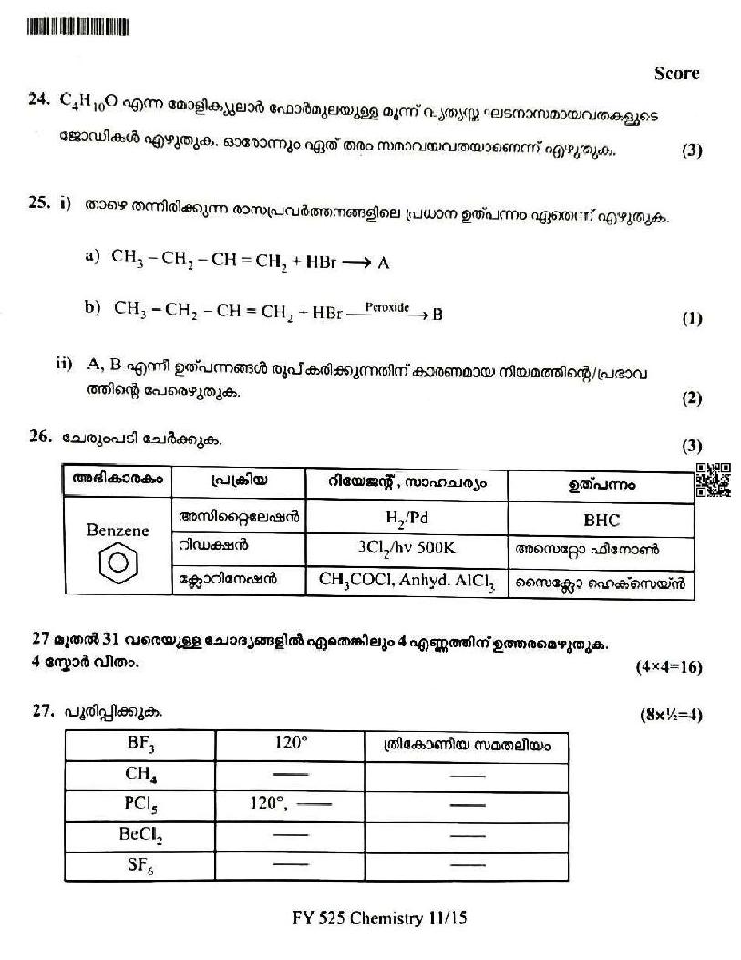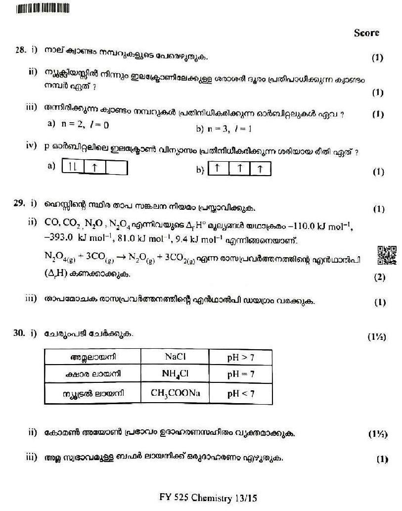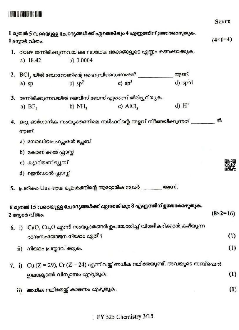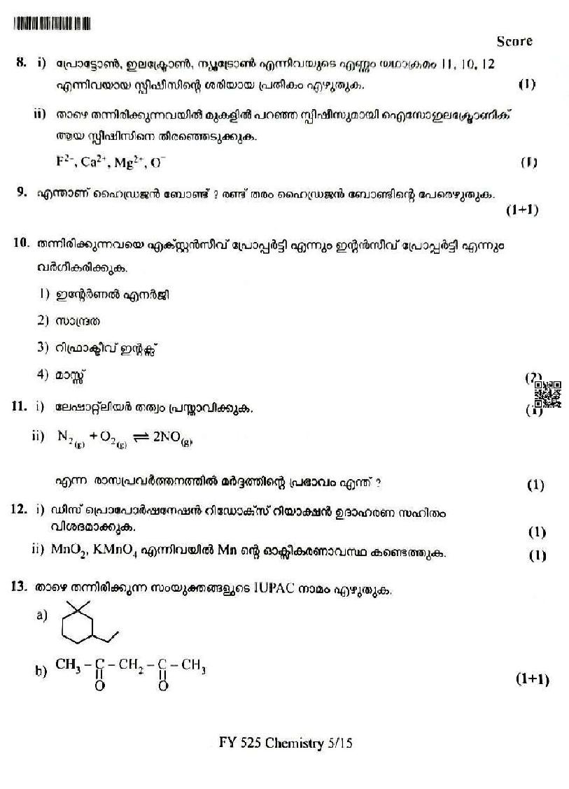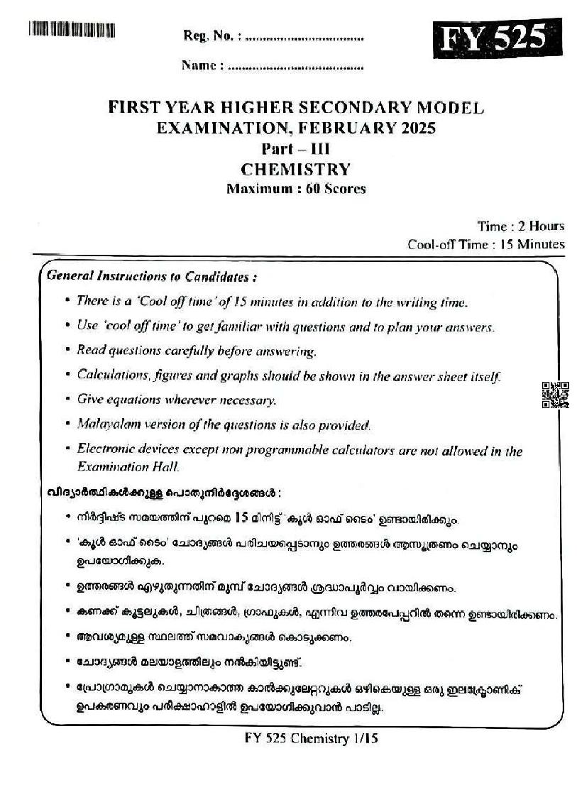 You can download the Kerala Plus One Chemistry Model Question Paper 2026 in PDF format to kickstart your practice. These question papers are curated by the Kerala Board of Public Examination (KBPE) and are a great way to evaluate your preparation level before the actual exams. The latest available complete paper is as follows.