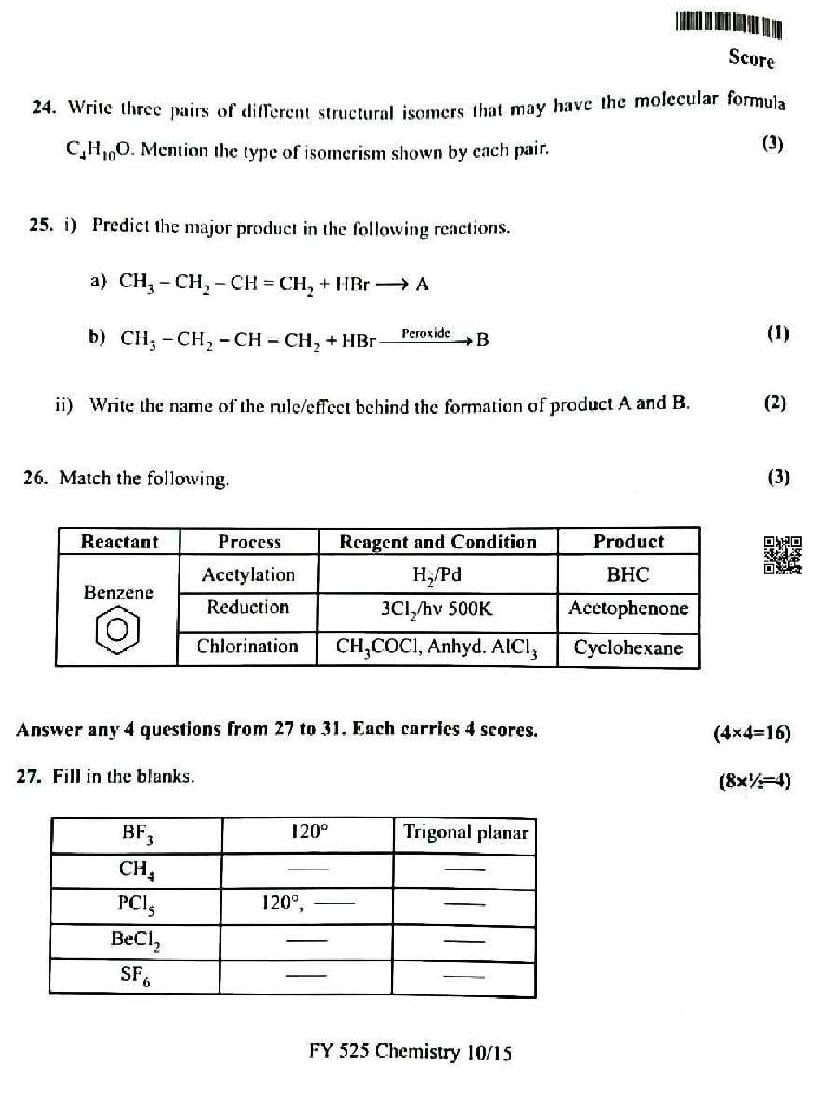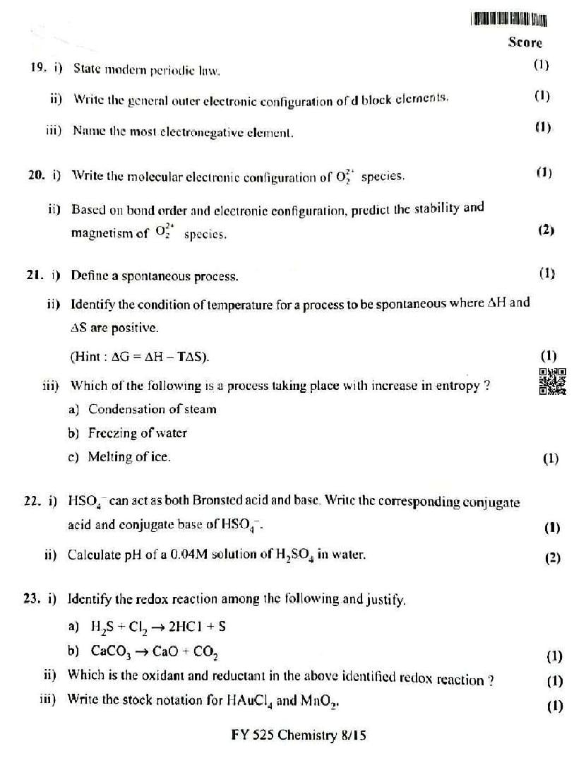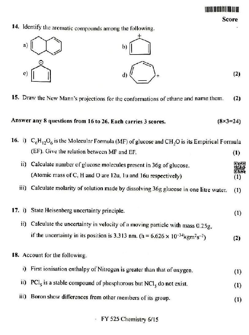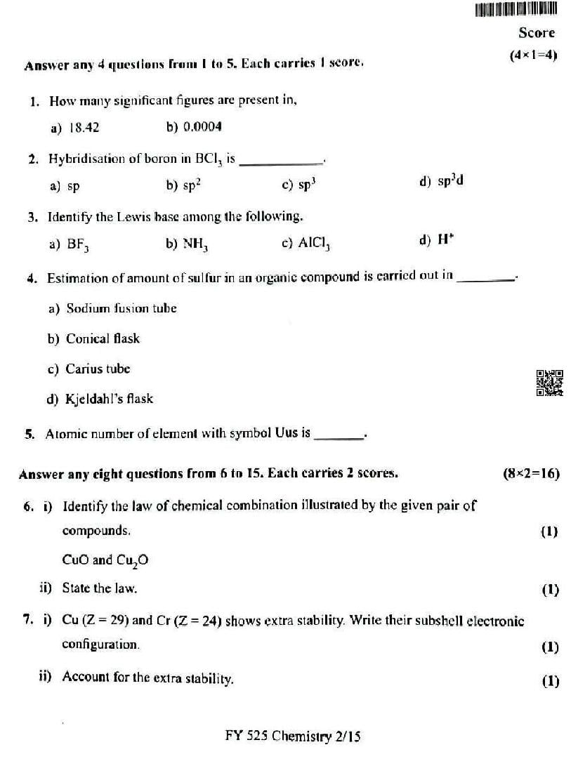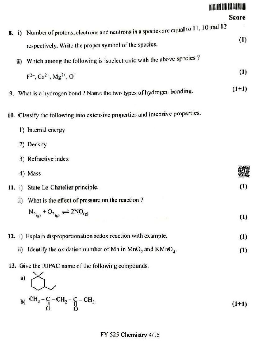 You can download the Kerala Plus One Chemistry Model Question Paper 2026 in PDF format to kickstart your practice. These question papers are curated by the Kerala Board of Public Examination (KBPE) and are a great way to evaluate your preparation level before the actual exams. The latest available complete paper is as follows.