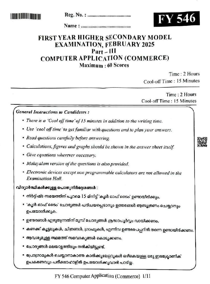 If you have any queries on Kerala Plus One Computer Application Model Exam Question Paper 2026, then please ask in comments below.