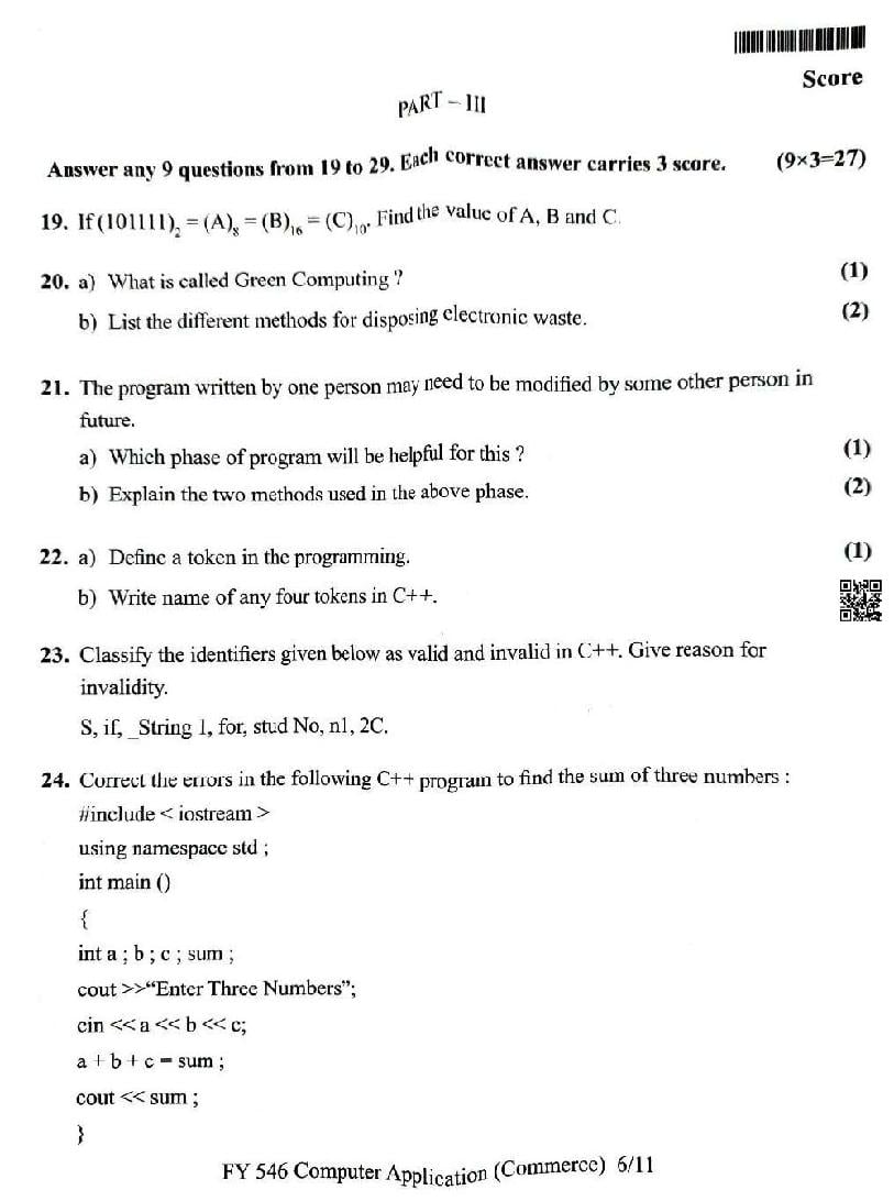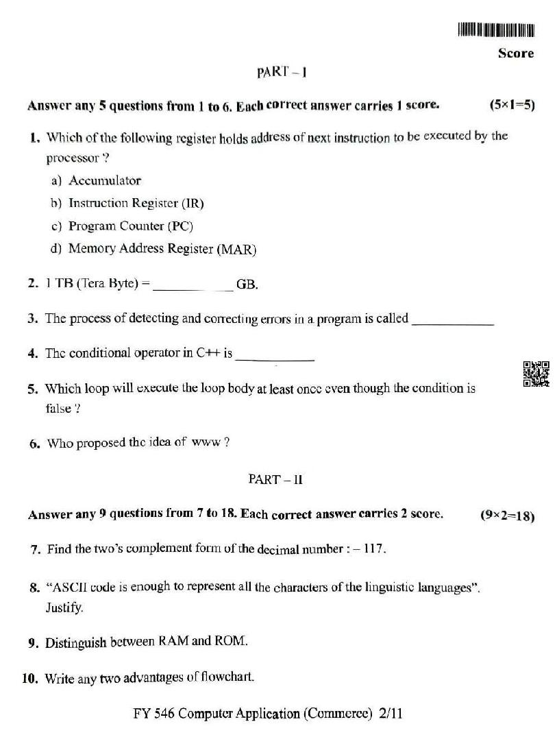You can download the Kerala Plus One Computer Application Model Question Paper 2026 in PDF format to kickstart your practice. These question papers are curated by the Kerala Board of Public Examination (KBPE) and are a great way to evaluate your preparation level before the actual exams. The latest available complete paper is as follows.