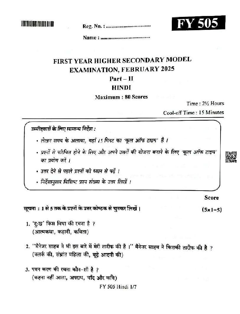 You can download the Kerala Plus One Hindi Model Question Paper 2026 in PDF format to kickstart your practice. These question papers are curated by the Kerala Board of Public Examination (KBPE) and are a great way to evaluate your preparation level before the actual exams. The latest available complete paper is as follows.