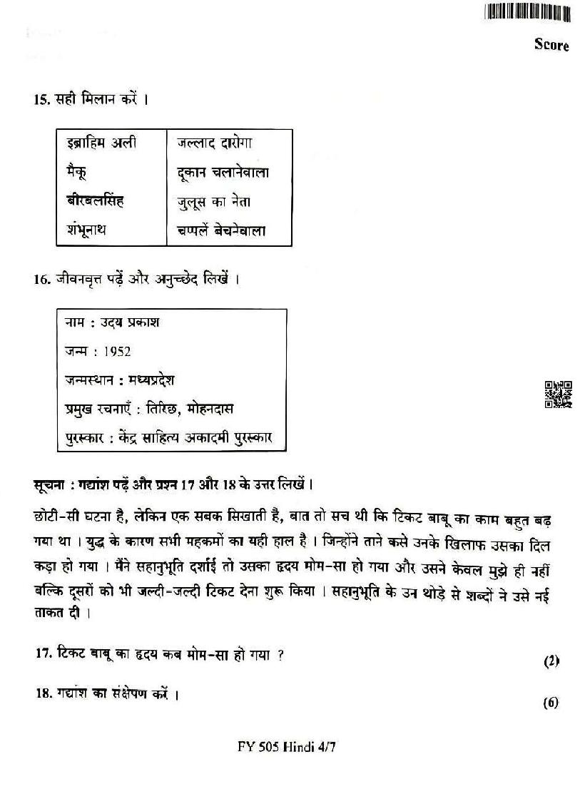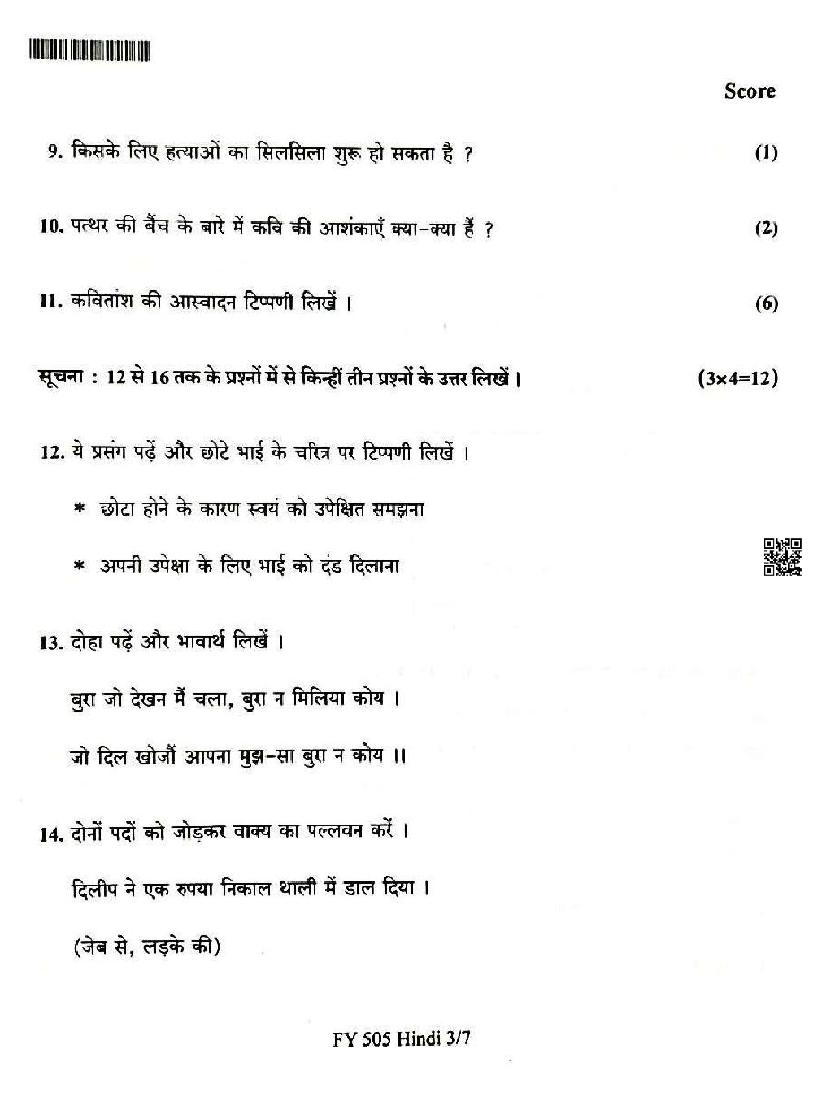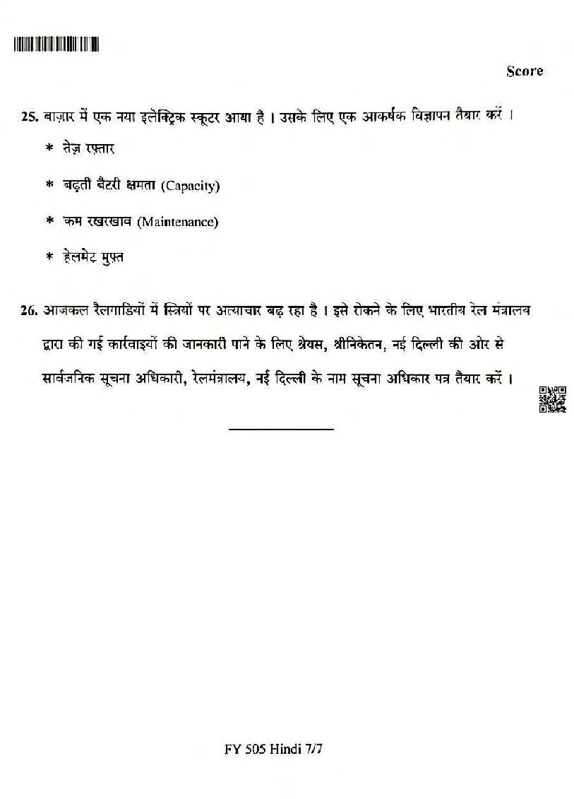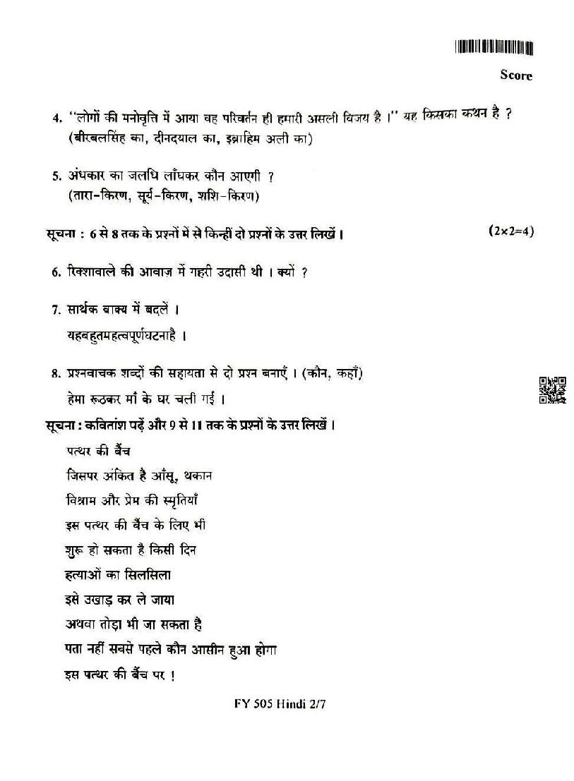 | Subject | Hindi |