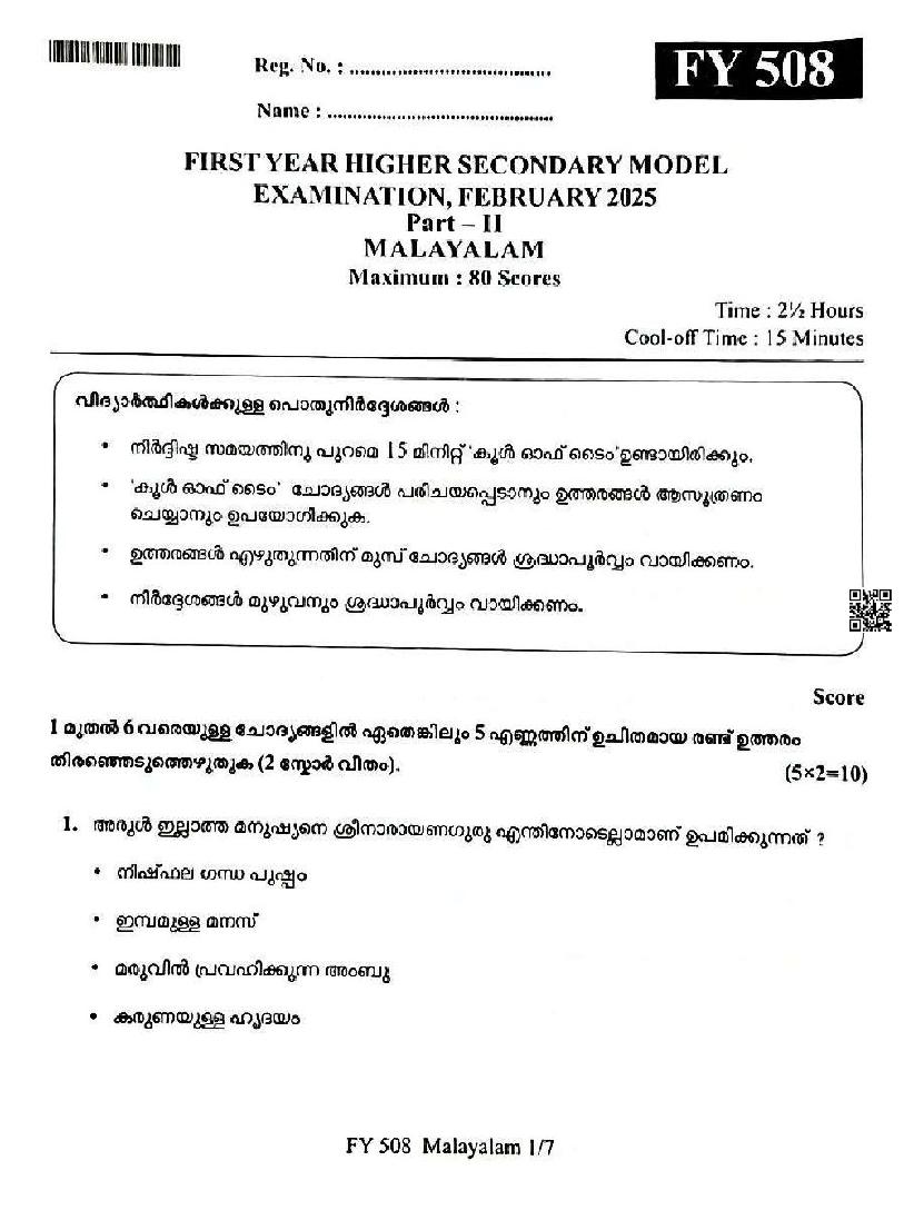 You can download the Kerala Plus One Malayalam Model Question Paper 2026 in PDF format to kickstart your practice. These question papers are curated by the Kerala Board of Public Examination (KBPE) and are a great way to evaluate your preparation level before the actual exams. The latest available complete paper is as follows.