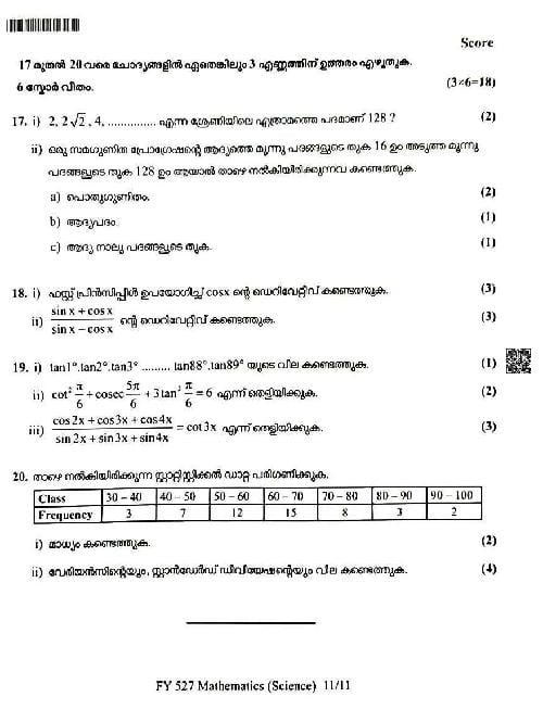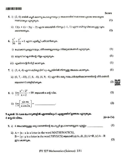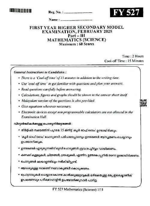 You can download the Kerala Plus One Maths Model Question Paper 2026 in PDF format to kickstart your practice. These question papers are curated by the Kerala Board of Public Examination (KBPE) and are a great way to evaluate your preparation level before the actual exams. The latest available complete paper is as follows.