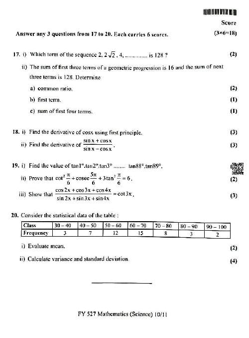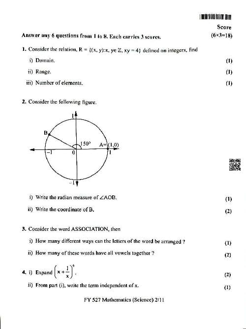 The Kerala Board Plus One Model Exam 2026 Question Paper of Maths is as follows. This can also be used as a Kerala Sample Question Paper for Plus One class 11, for the Maths subject test.