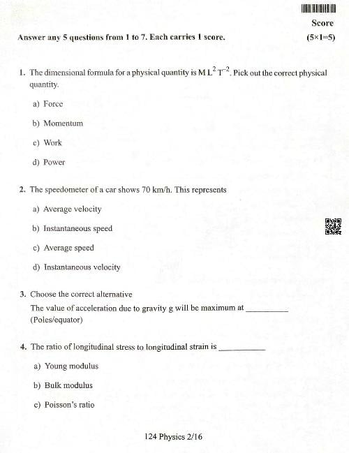 You can download the Kerala Plus One Physics Model Question Paper 2025 in PDF format to kickstart your practice. These question papers are curated by the Kerala Board of Public Examination (KBPE) and are a great way to evaluate your preparation level before the actual exams. The latest available complete paper is as follows.