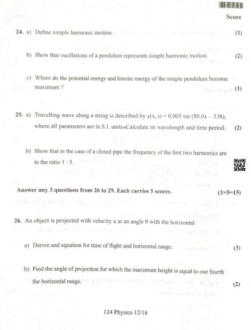 Kerala Plus One Model Exam Question Paper 2024 Physics View Download