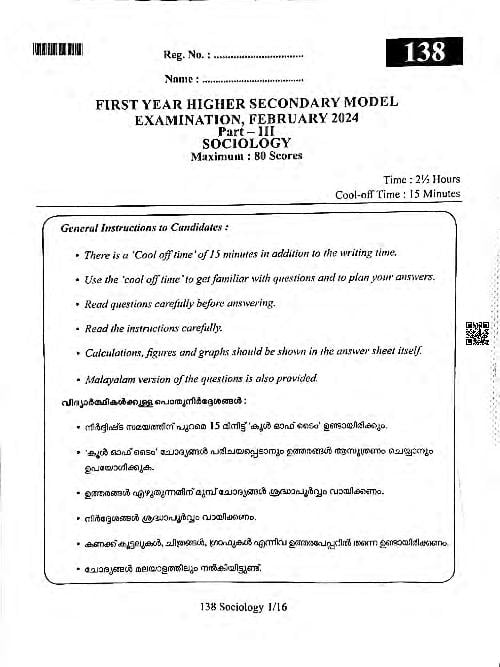 Kerala Plus One Sociology Model Exam Question Paper 2025 Download Link – Coming Soon