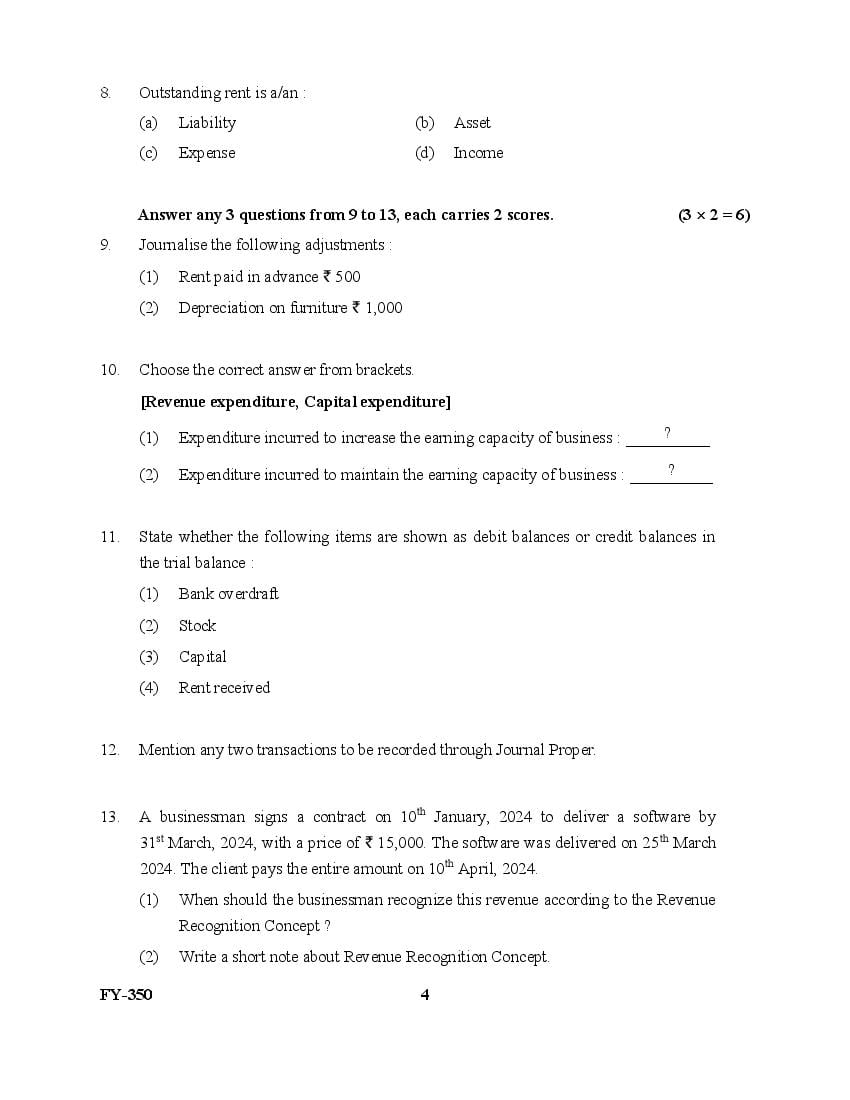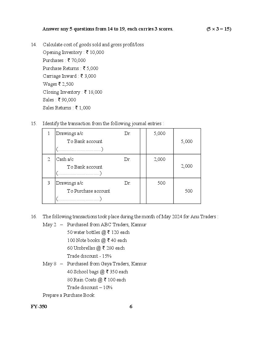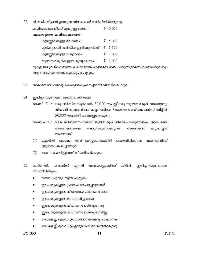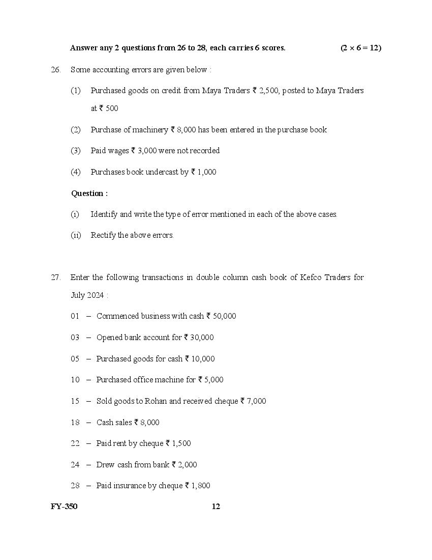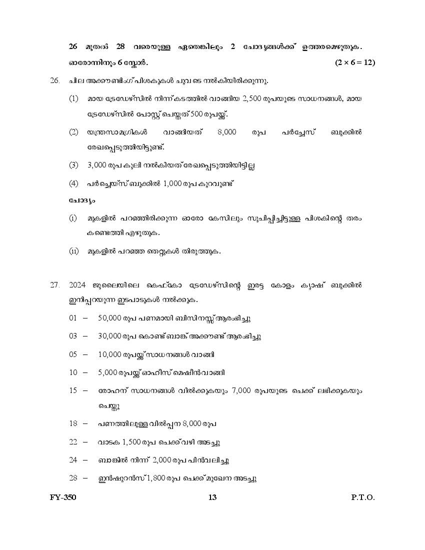 | Education Material Here | Kerala Board Exam Question Paper for Class 11 Accountancy with CA 2025 |