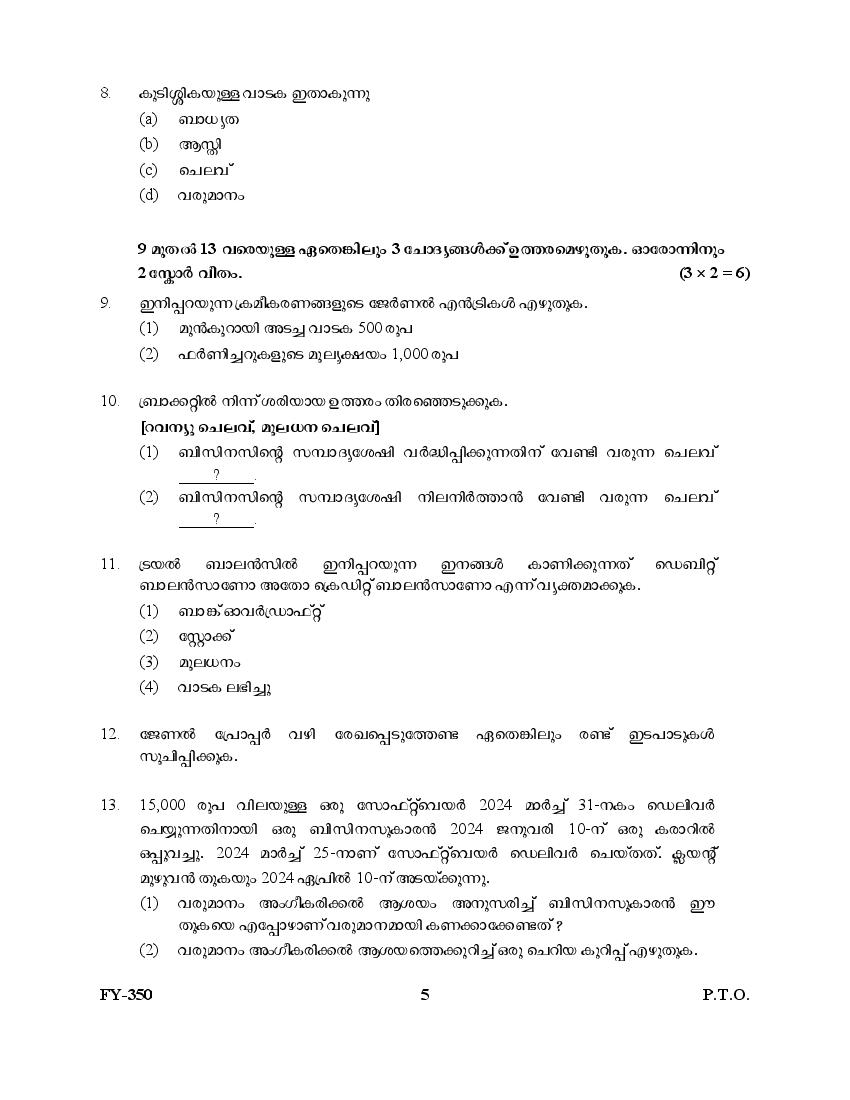 Kerala Plus One Question Paper 2025 Accounts with CA View Download