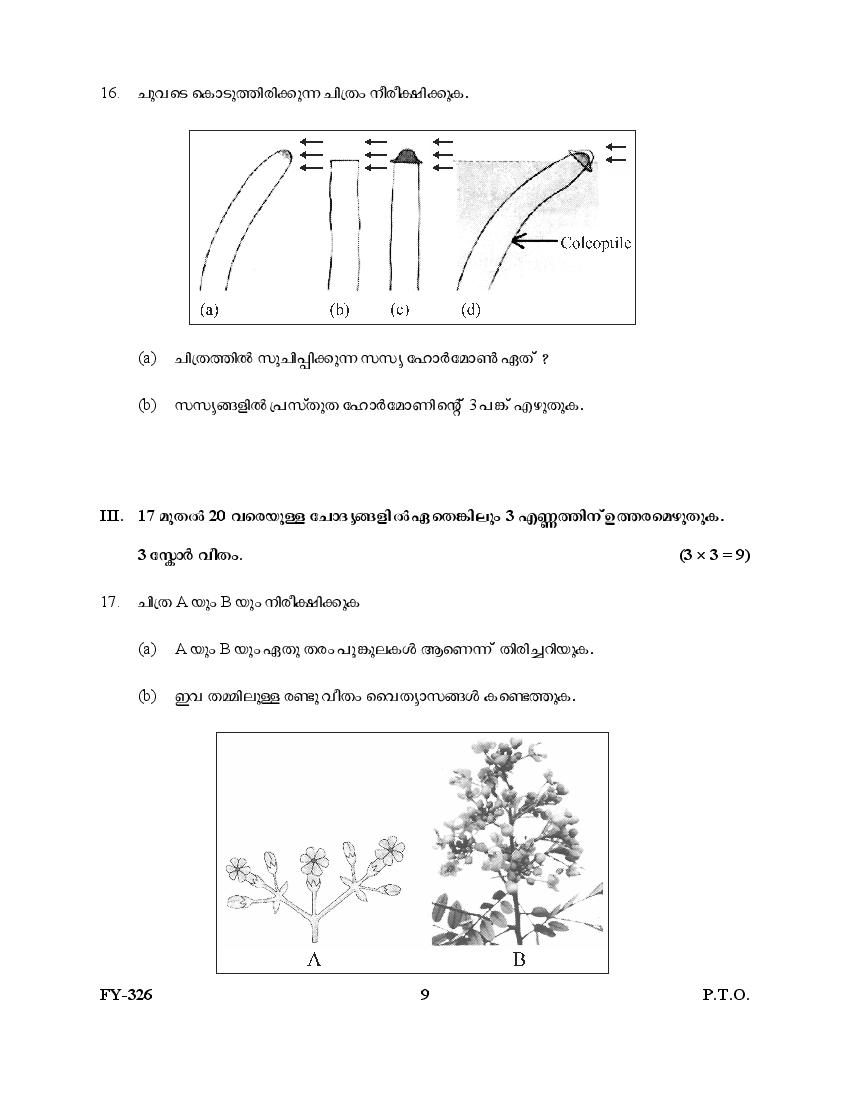 Kerala Plus One Question Paper 2025 Biology View Download