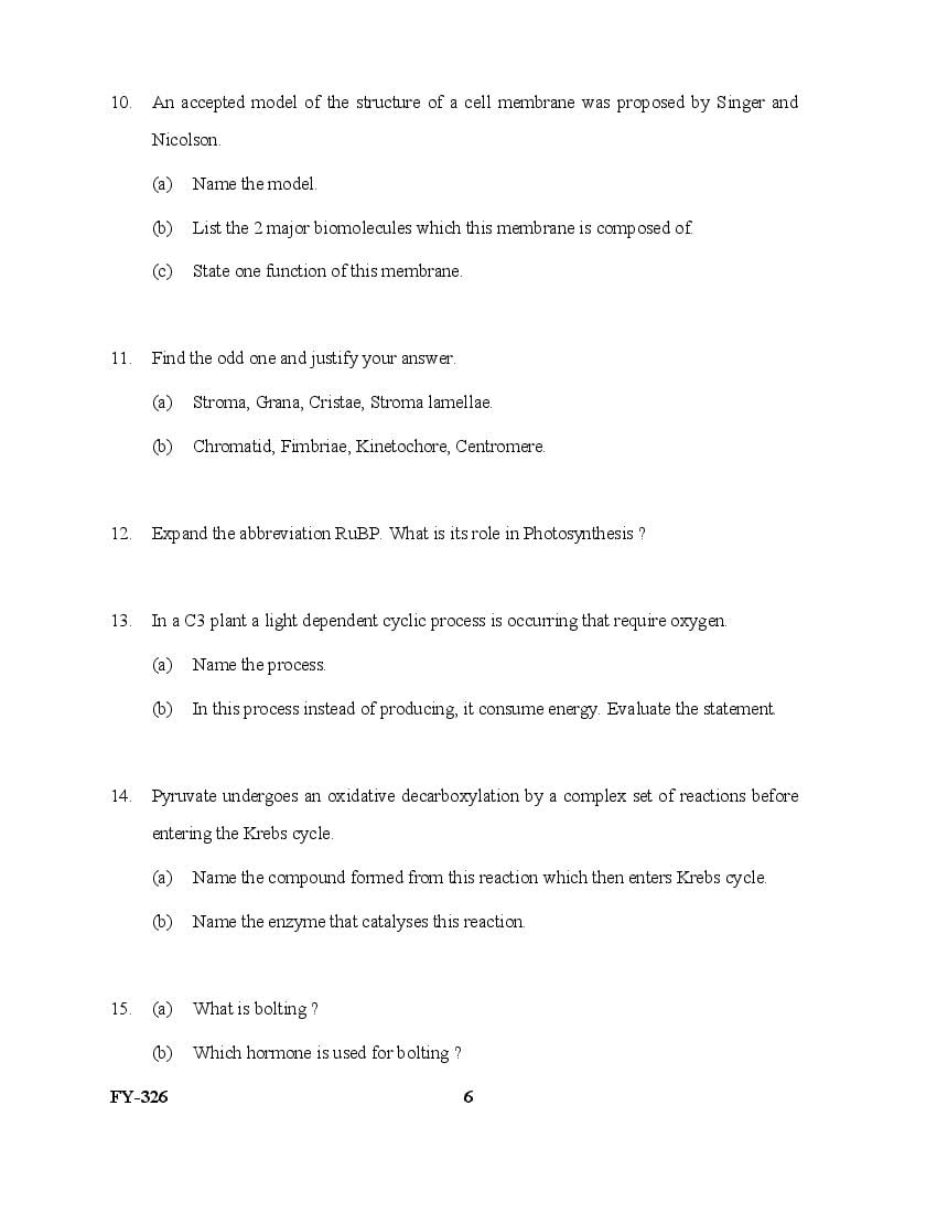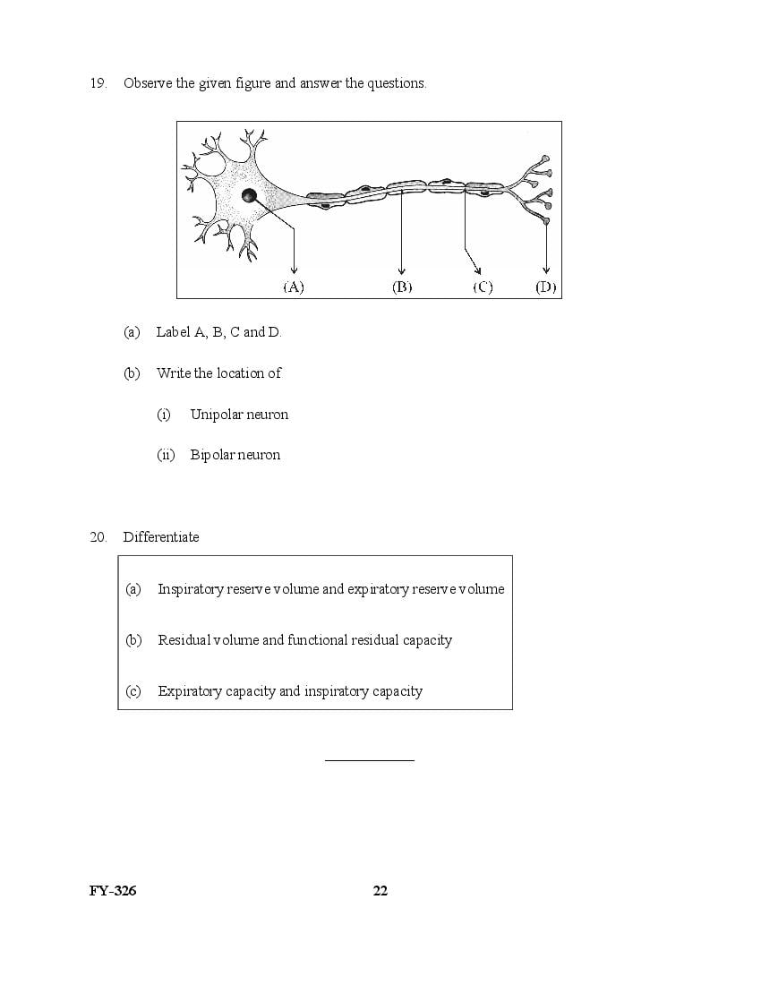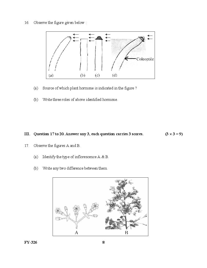 The Kerala Previous Year Question Paper for Class 11 (Plus One) Biology is as follows.
