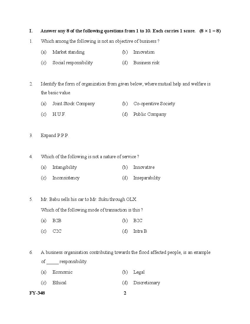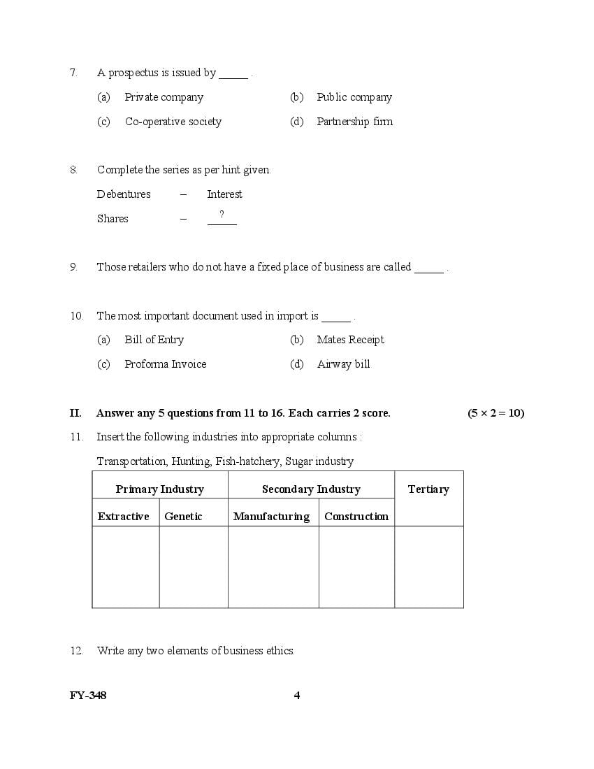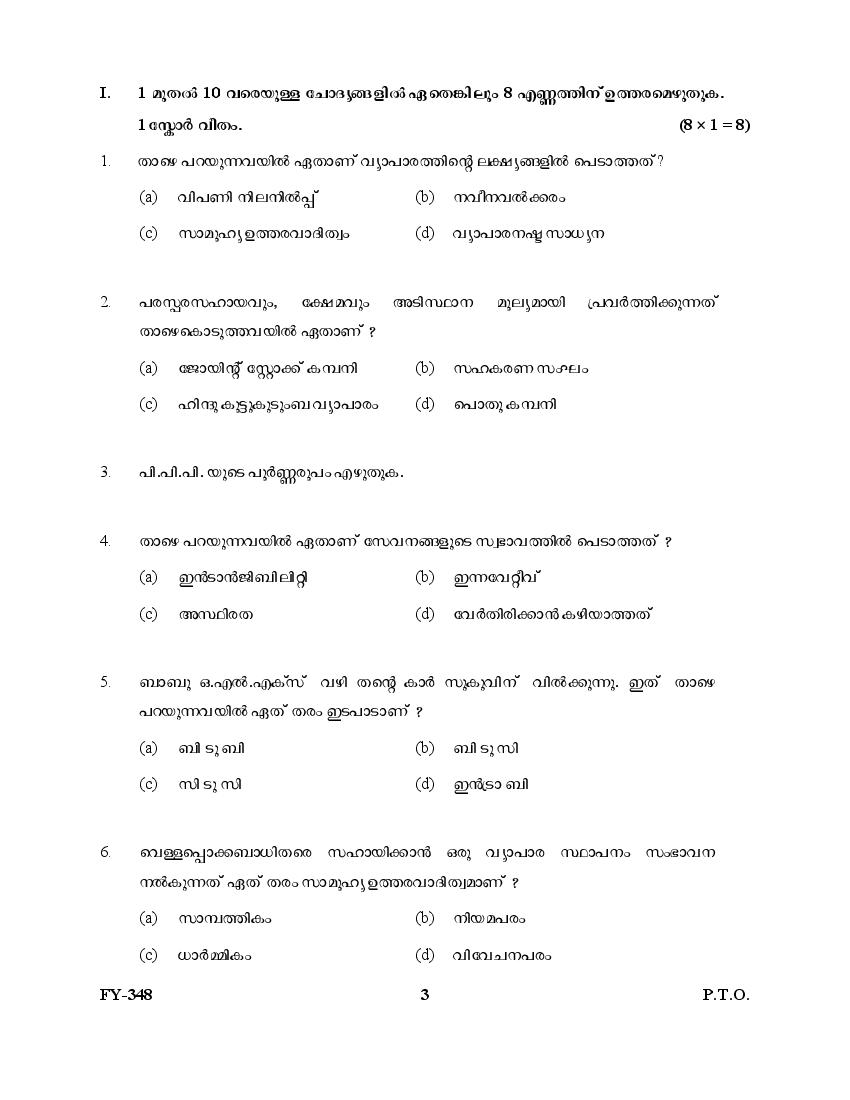 The Kerala Previous Year Question Paper for Class 11 (Plus One) Business Studies is as follows.