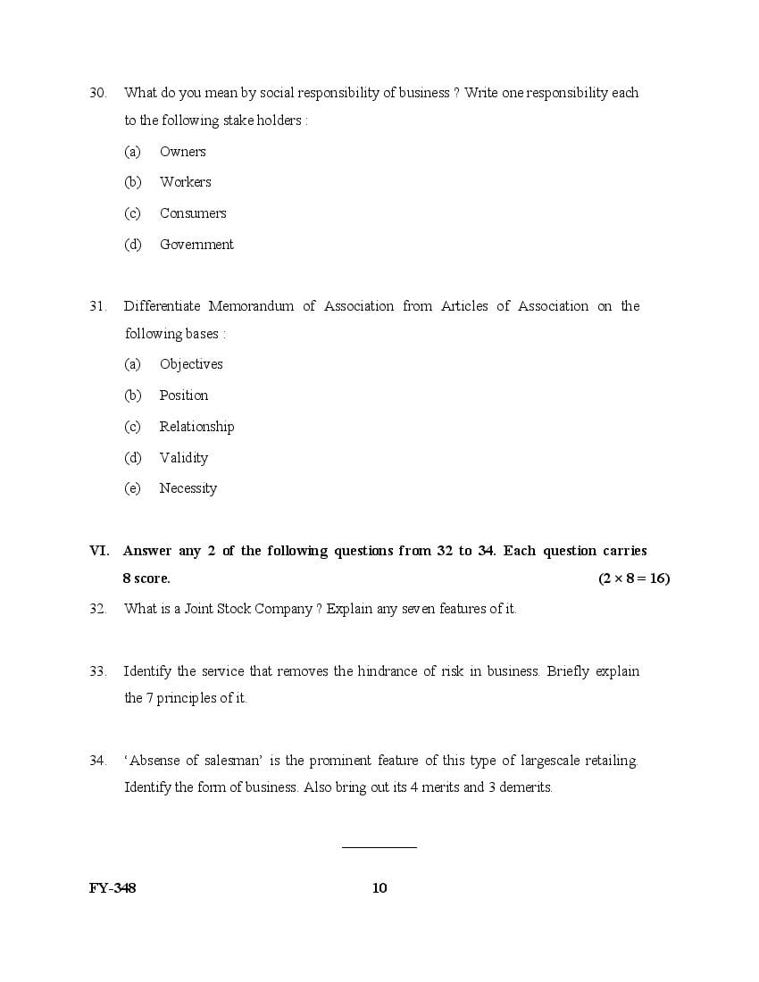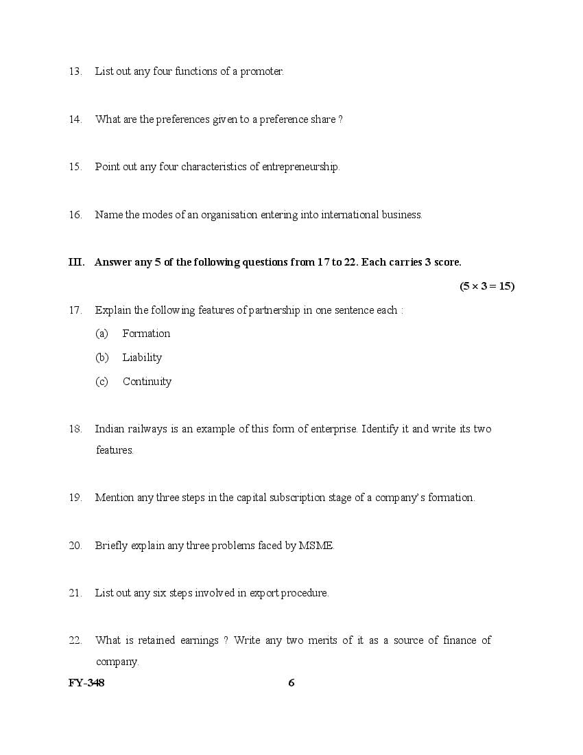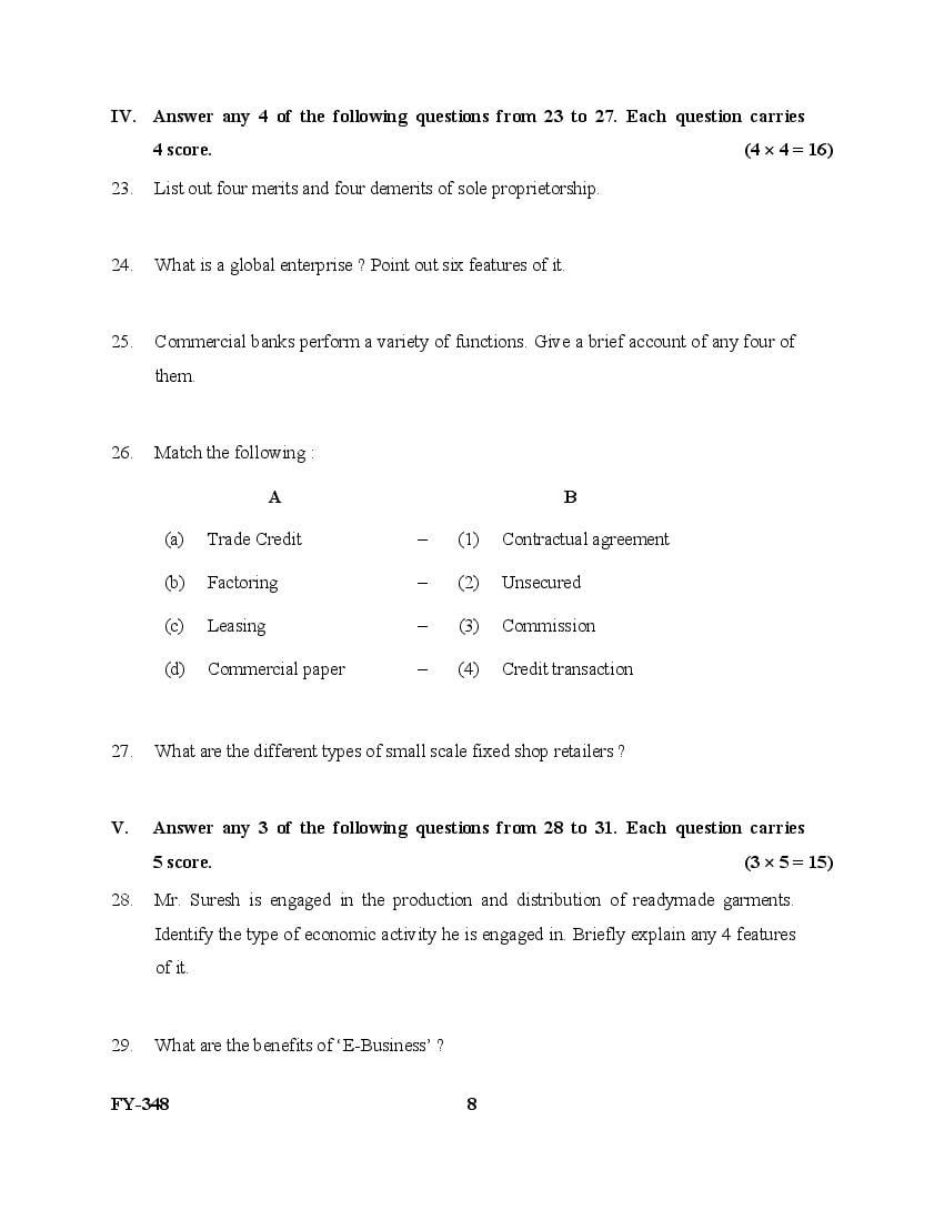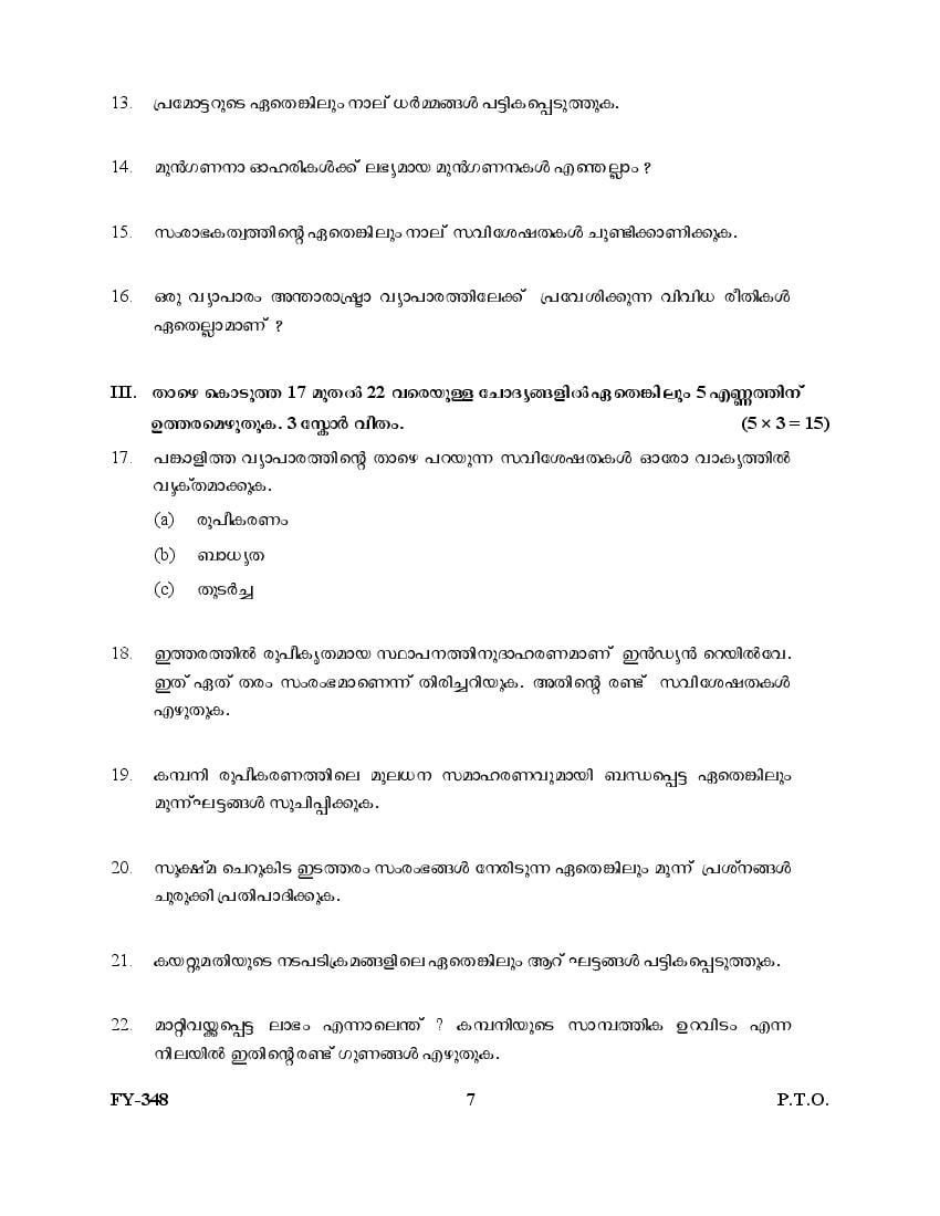 The Kerala Previous Year Question Paper for Class 11 (Plus One) Business Studies is as follows.