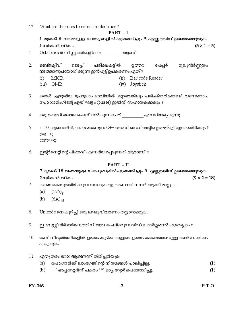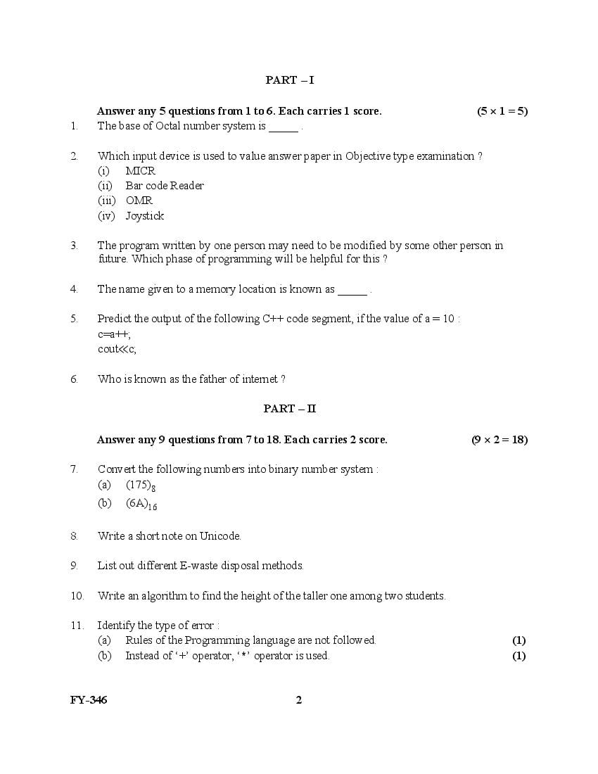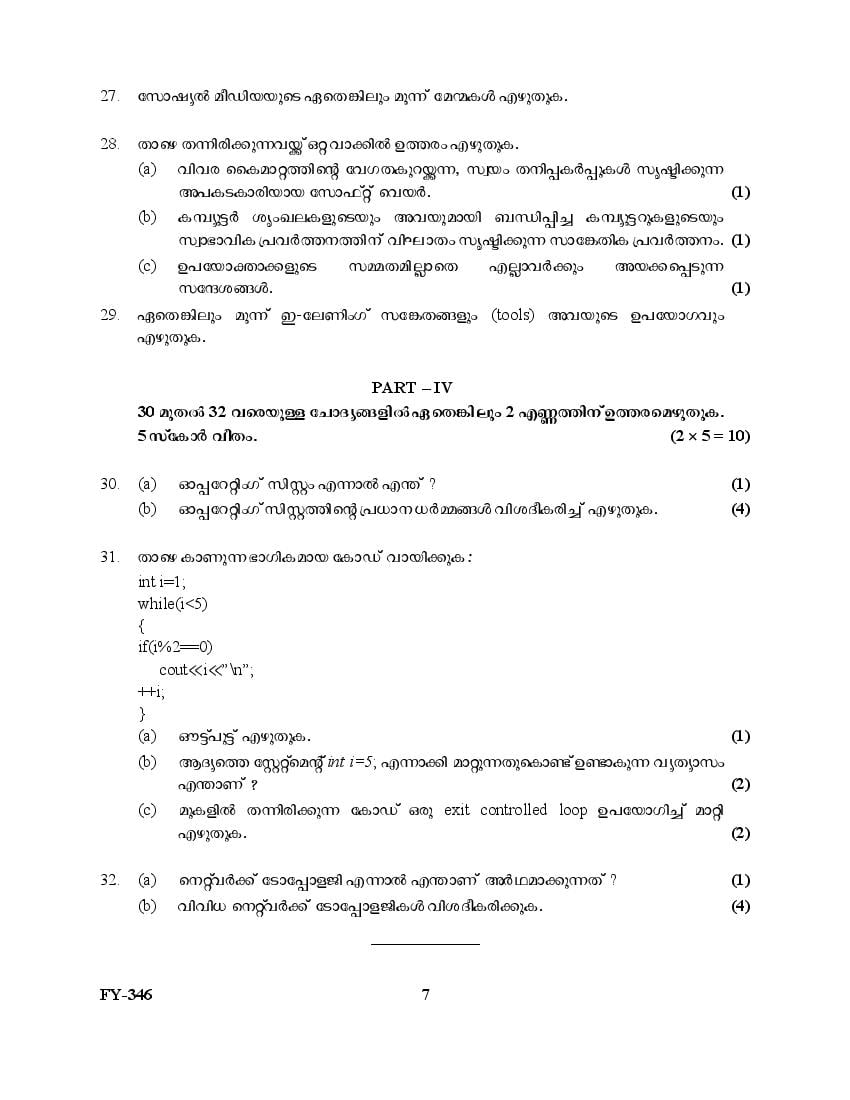 Kerala Plus One Question Paper 2025 Computer Application Commerce View Download