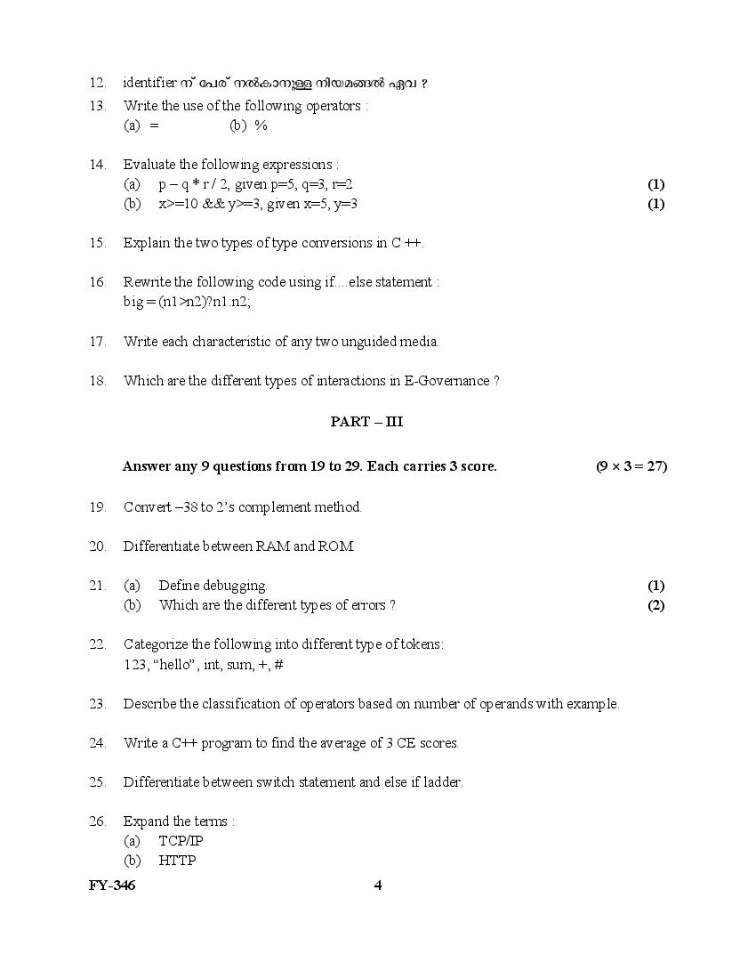The Kerala Previous Year Question Paper for Class 11 (Plus One) Computer Application (Commerce) is as follows.