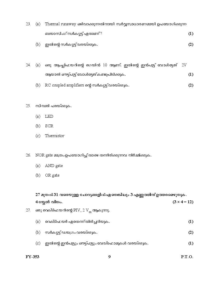 Kerala Plus One Electronic System Question Paper 2025 PDF
