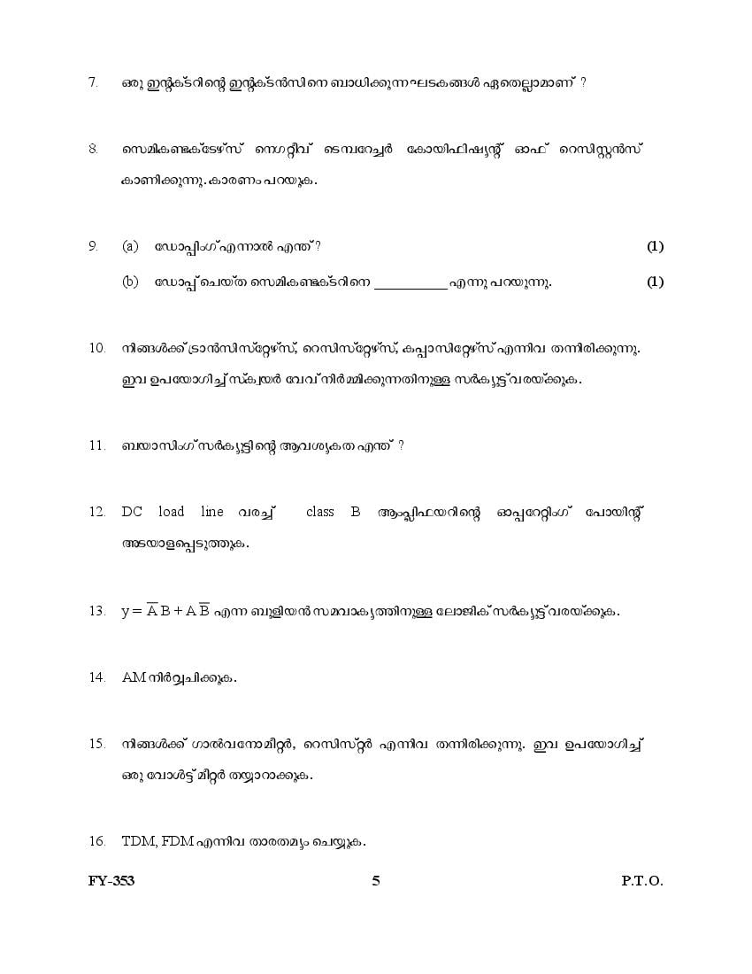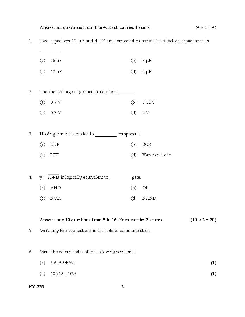 The Kerala Previous Year Question Paper for Class 11 (Plus One) Electronic System is as follows.