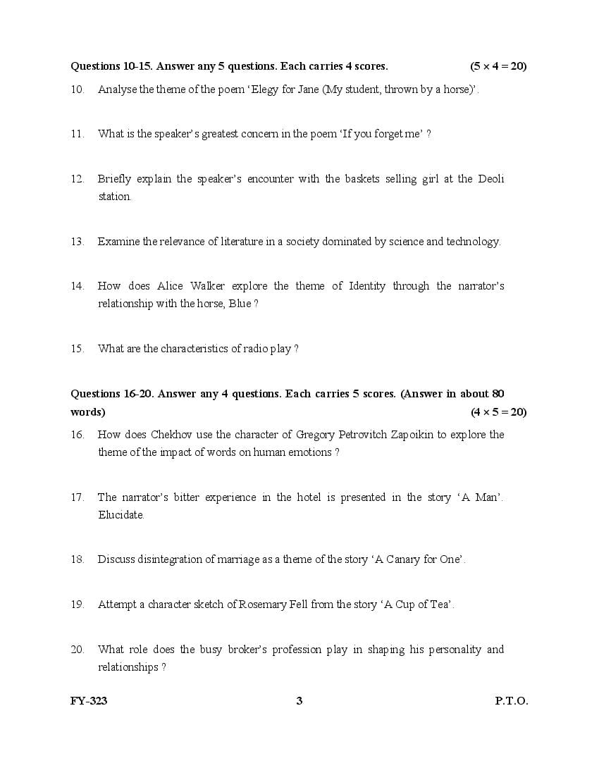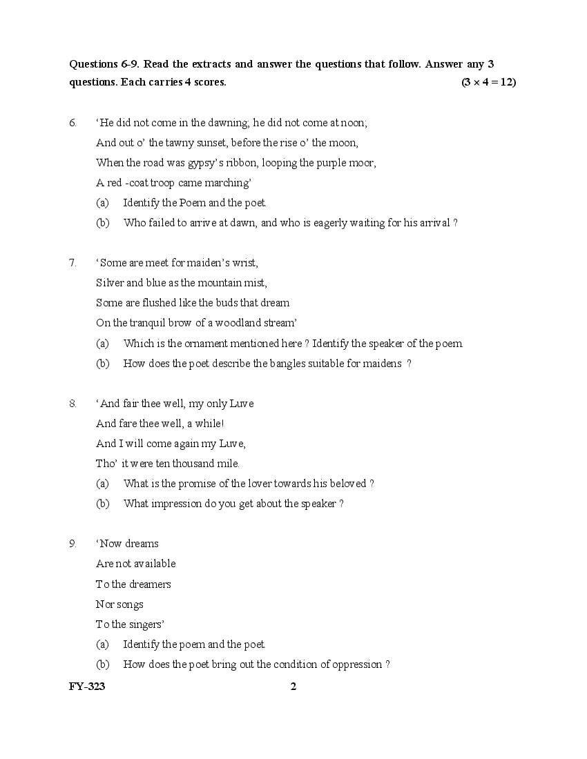 The Kerala Previous Year Question Paper for Class 11 (Plus One) English Literature is as follows.