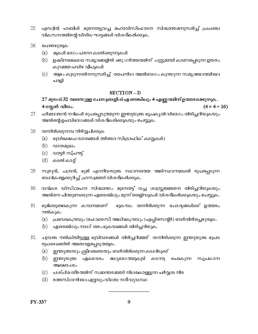 | Education Material Here | Kerala Board Exam Question Paper for Class 11 Geography 2025 |