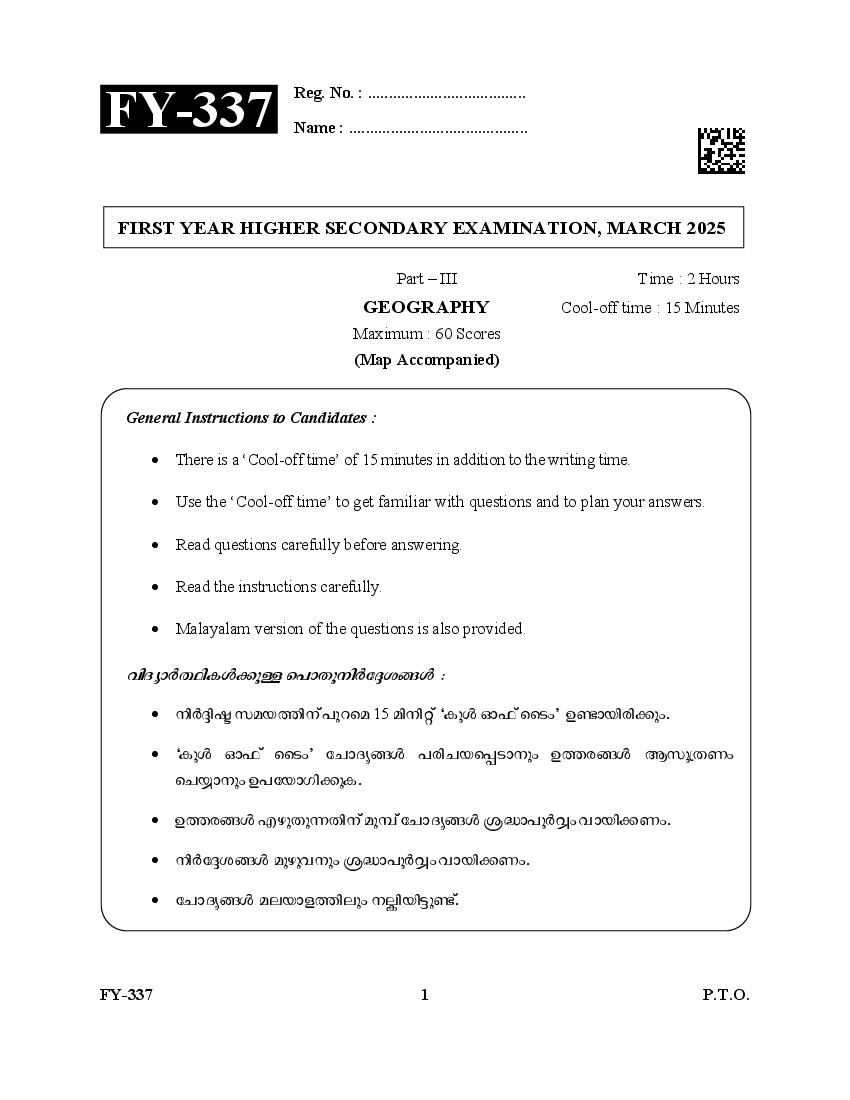 Kerala Plus One Geography Question Paper 2025 Download Link – Click Here to Download Question Paper PDF