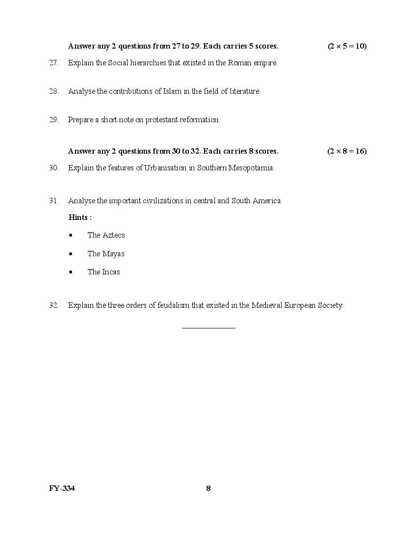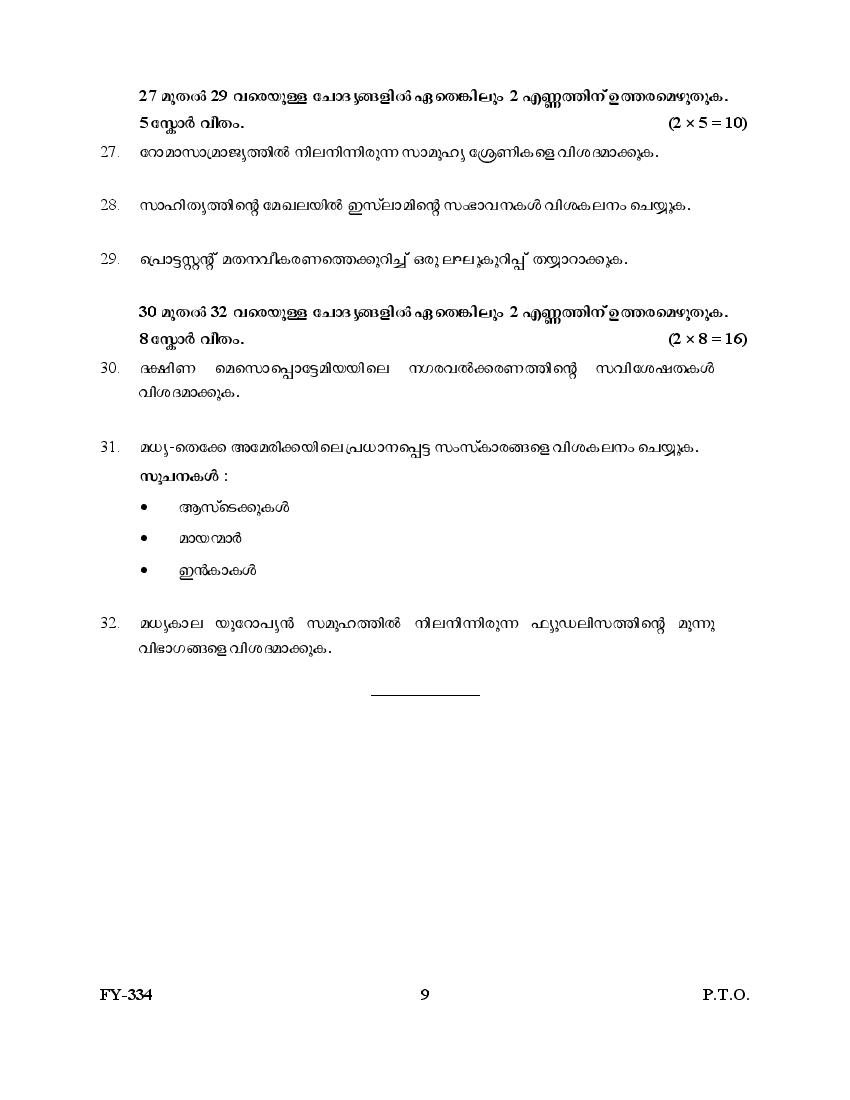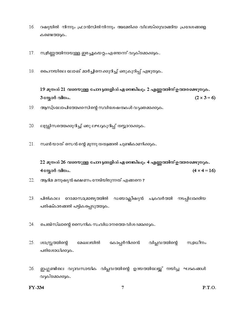 The Kerala Previous Year Question Paper for Class 11 (Plus One) History is as follows.