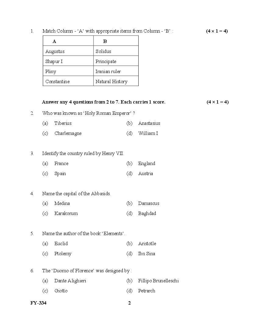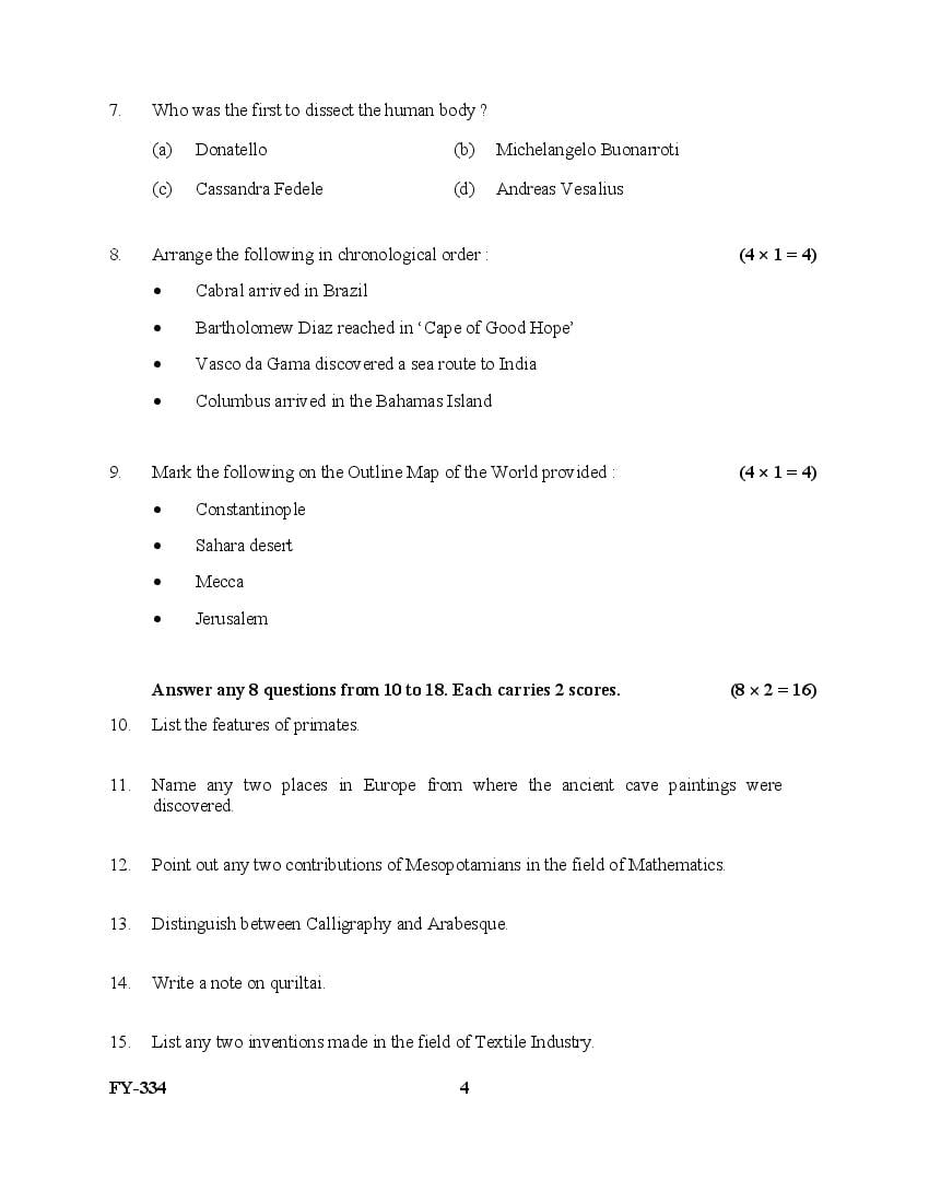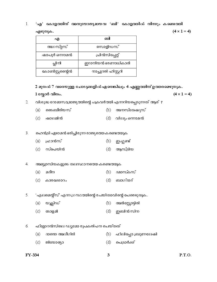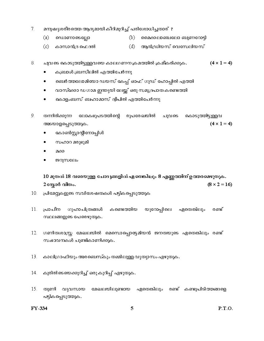 The Kerala Previous Year Question Paper for Class 11 (Plus One) History is as follows.