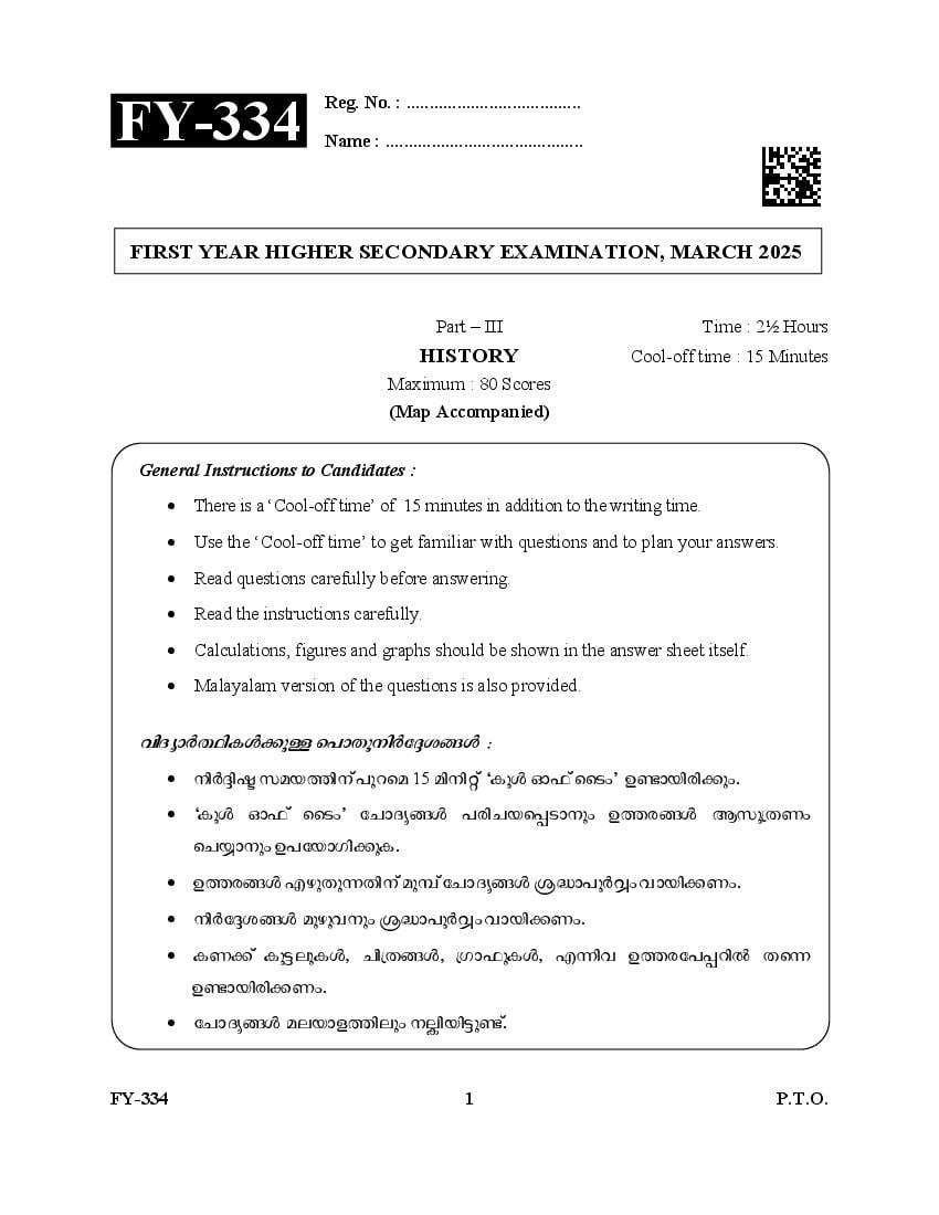 Kerala Plus One History Question Paper 2025 Download Link – Click Here to Download Question Paper PDF