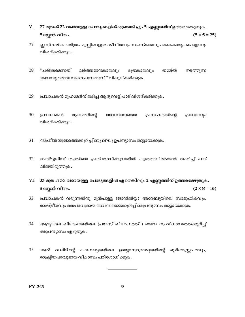 Kerala Plus One Question Paper 2025 Islamic History and Culture View Download