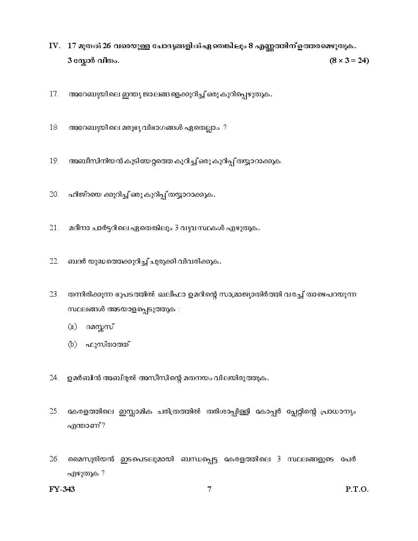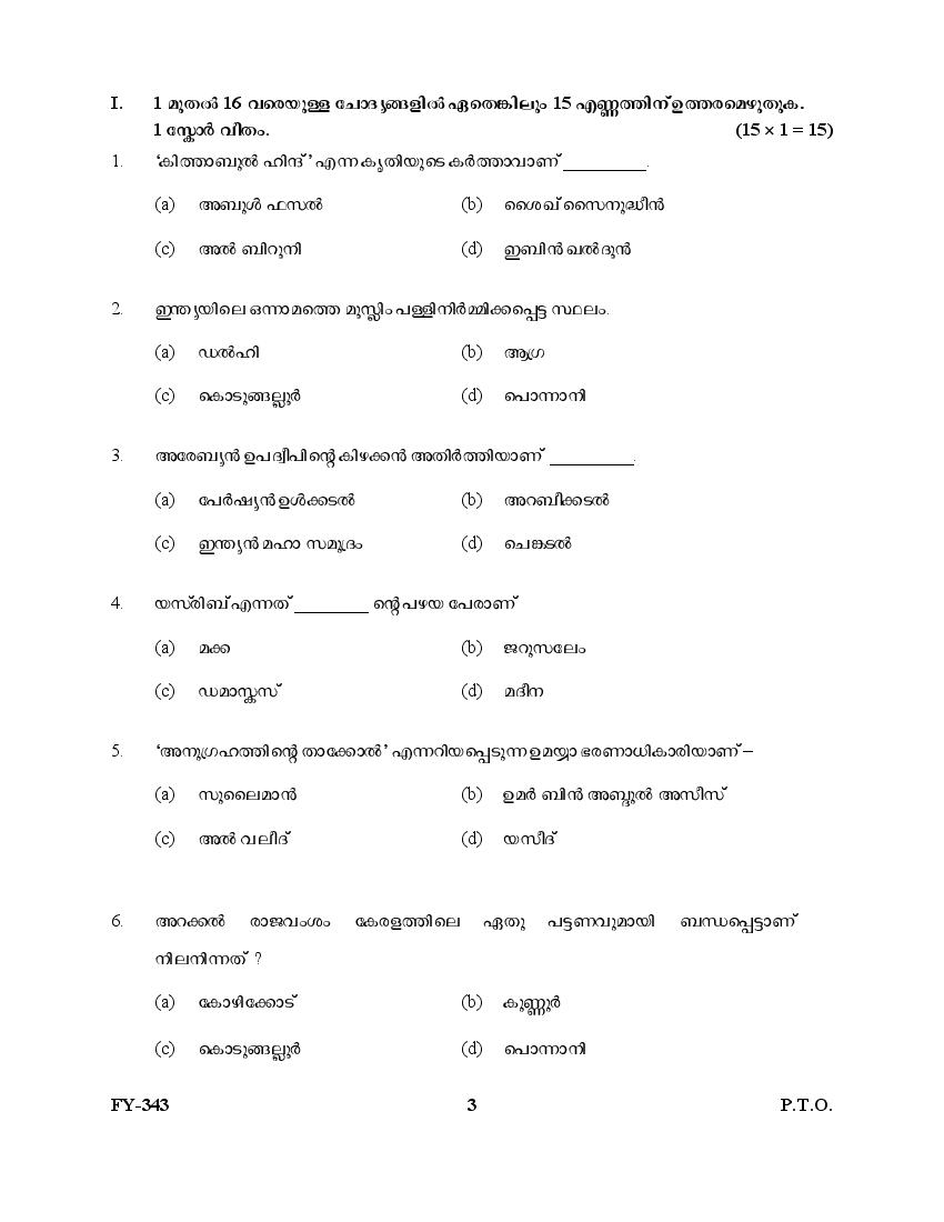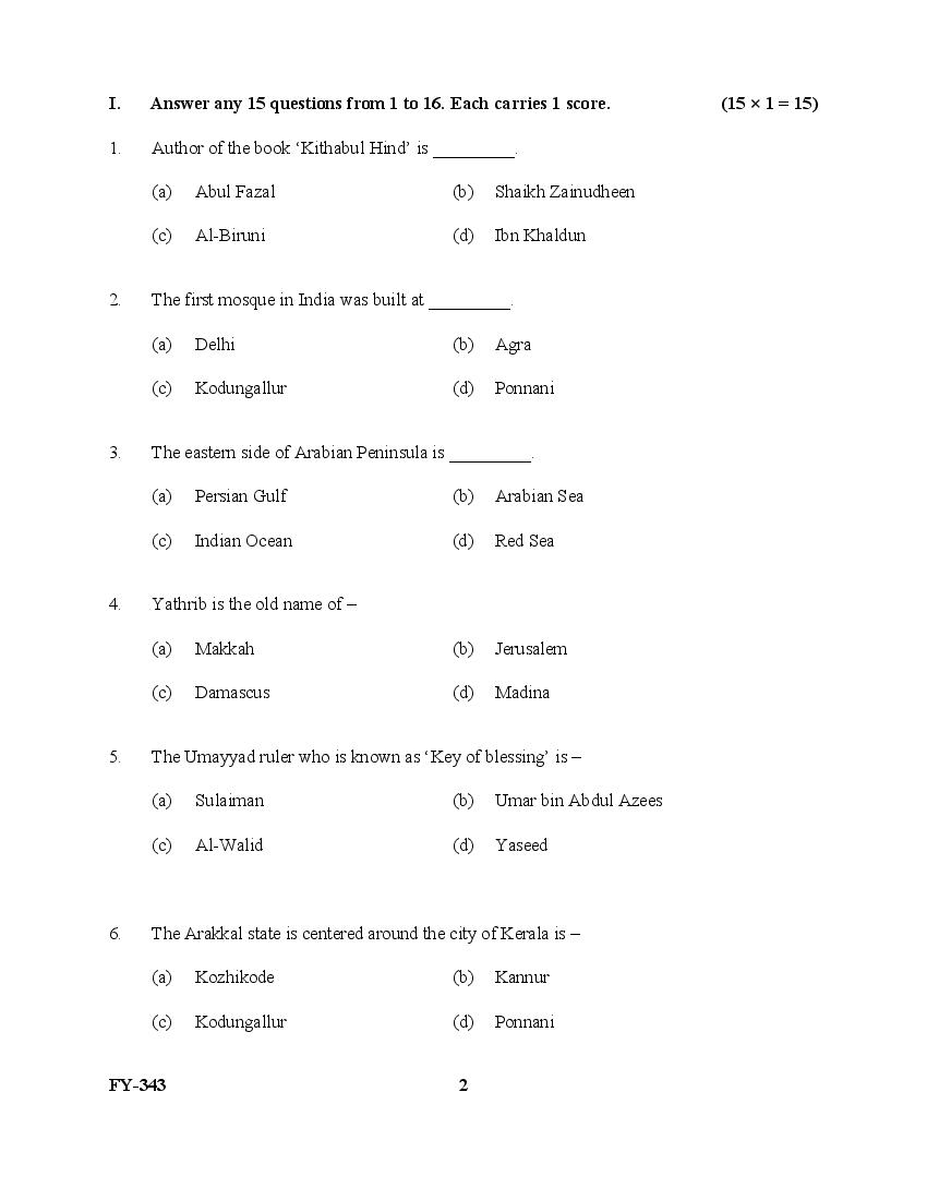 The Kerala Previous Year Question Paper for Class 11 (Plus One) Islamic History And Culture is as follows.