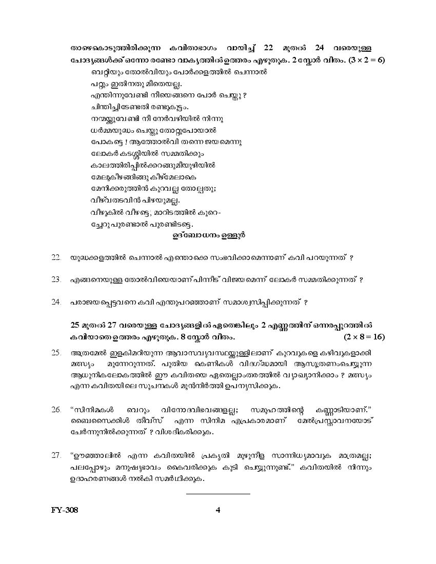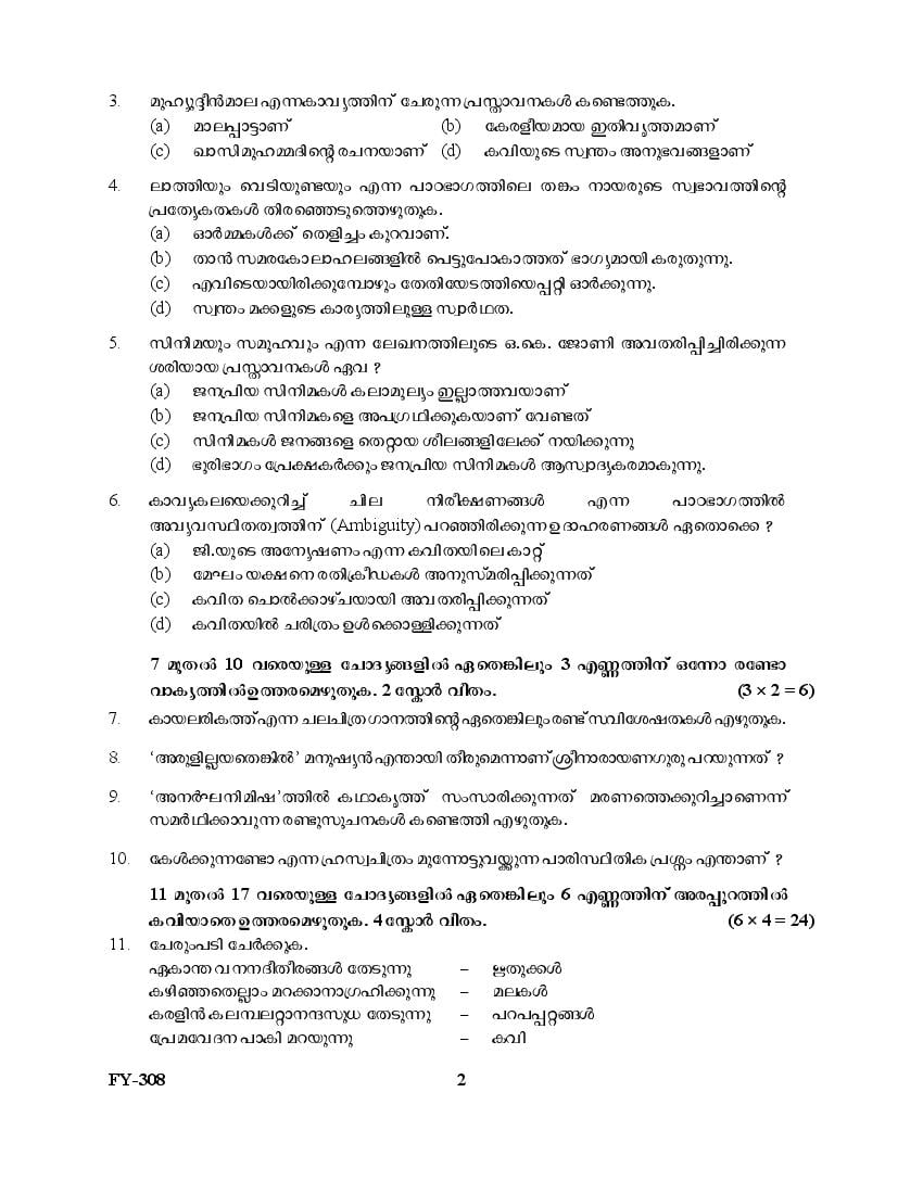 The Kerala Previous Year Question Paper for Class 11 (Plus One) Malayalam is as follows.