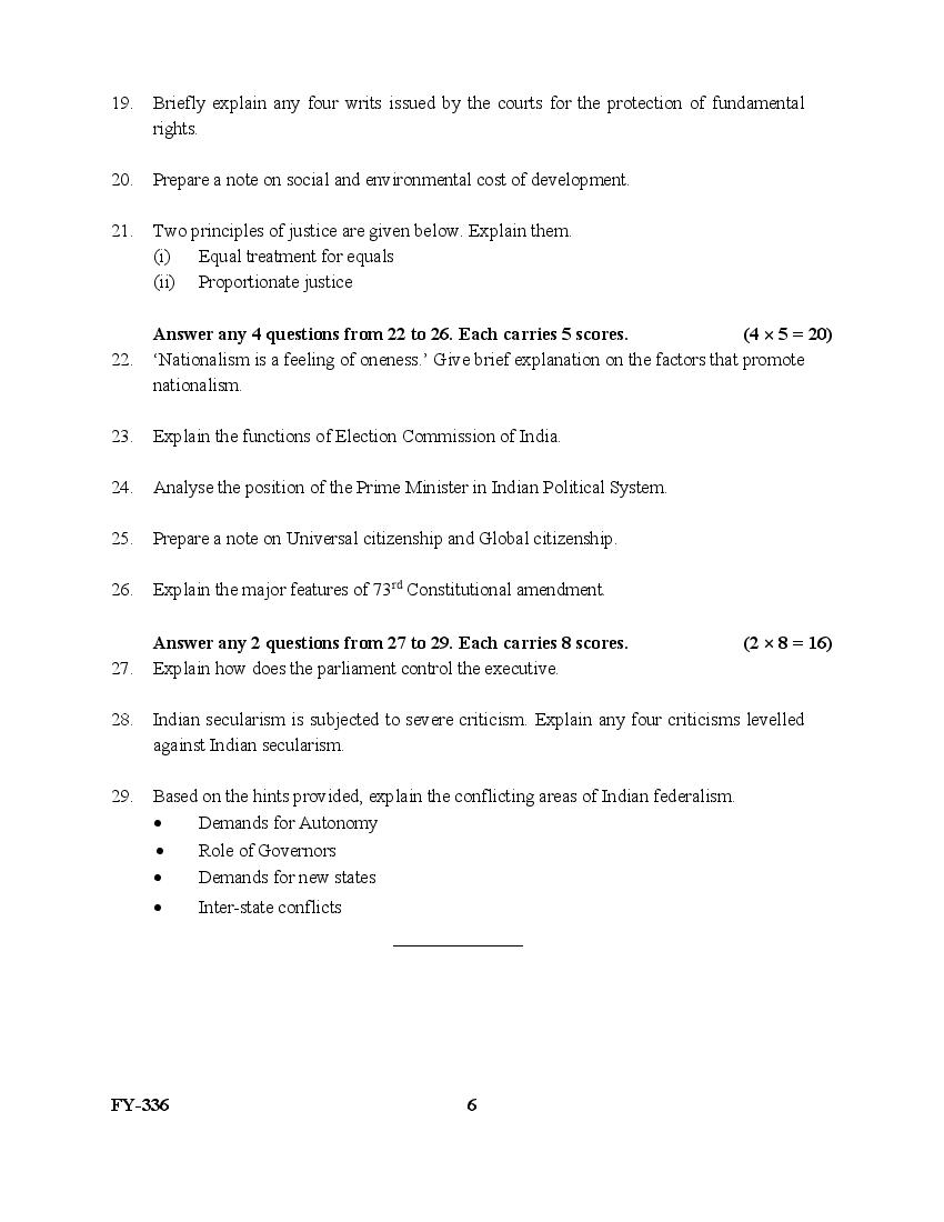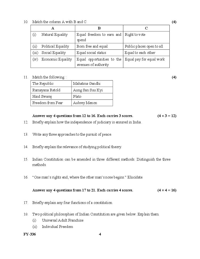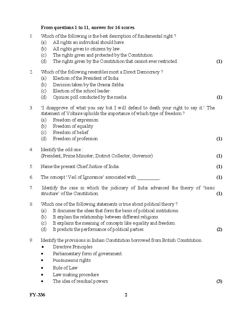 The Kerala Previous Year Question Paper for Class 11 (Plus One) Political Science is as follows.