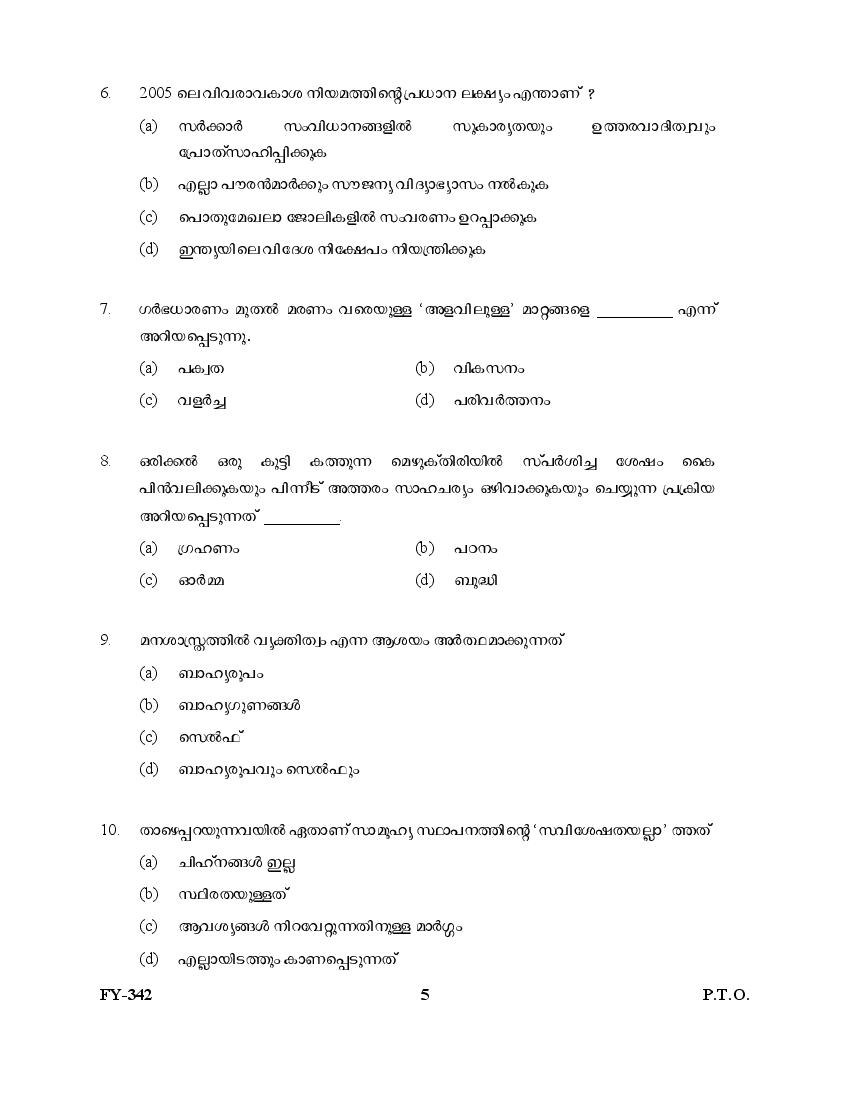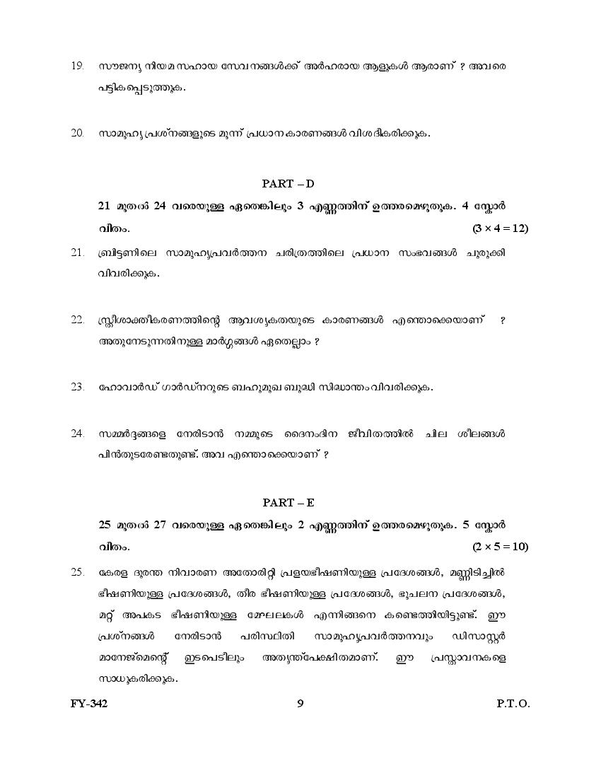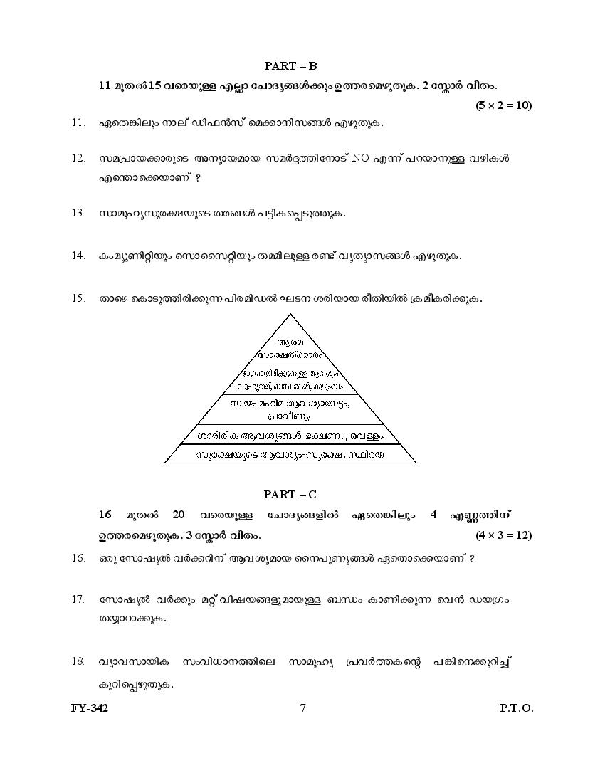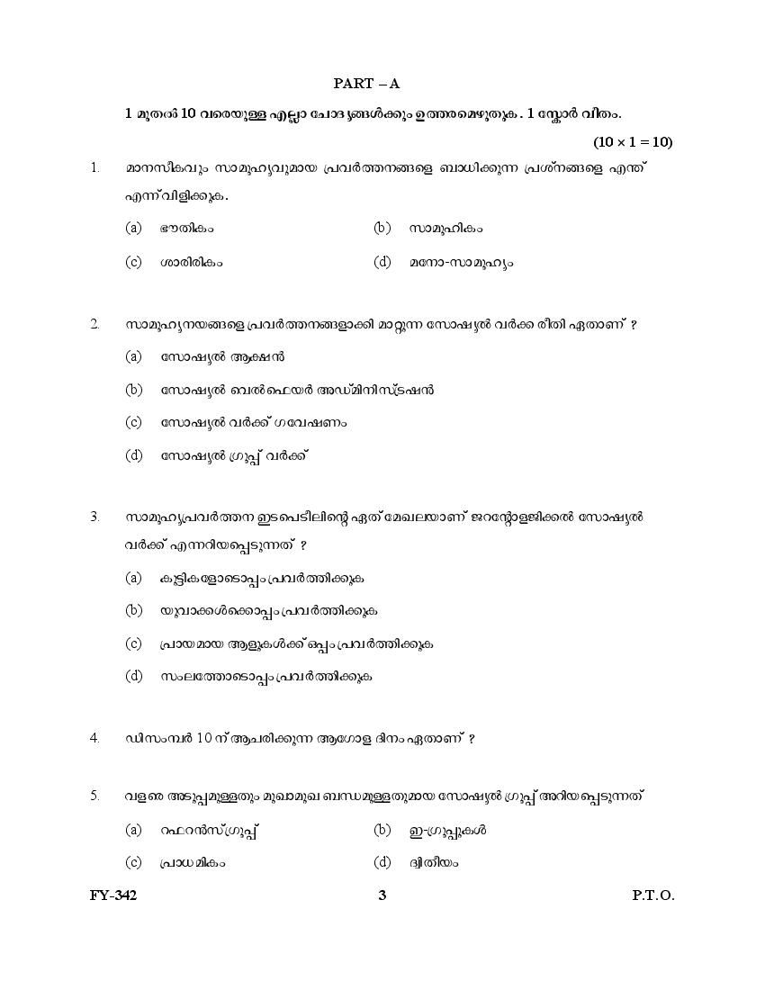 Kerala Plus One Question Paper 2025 Social Work View Download