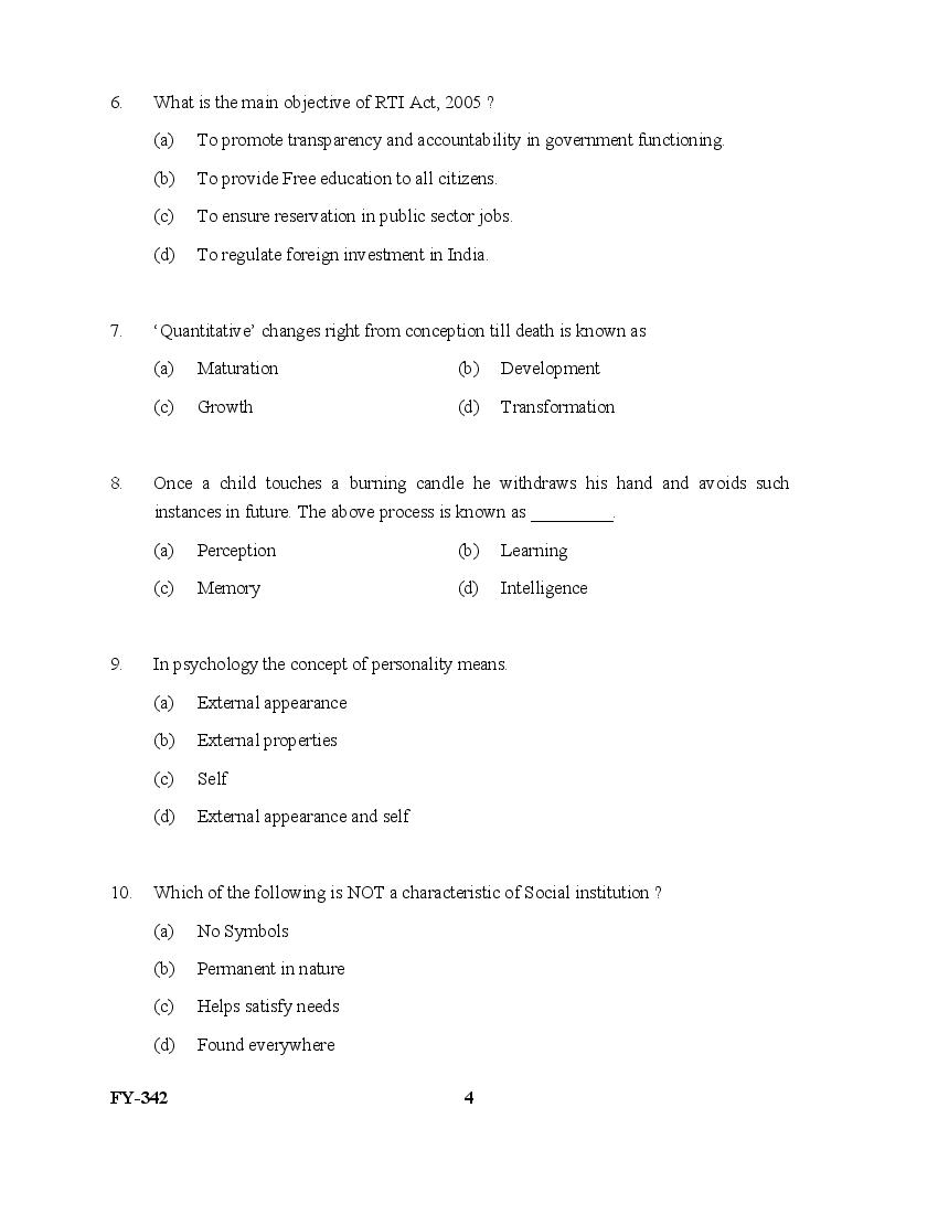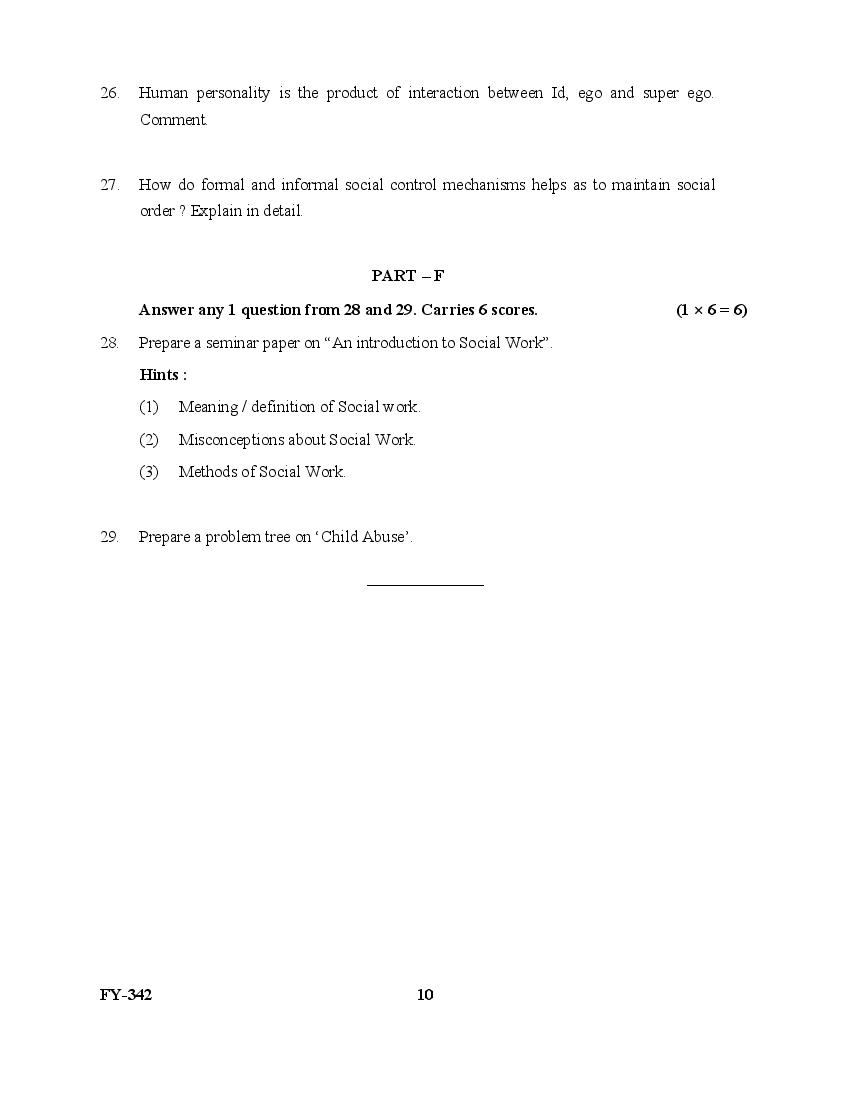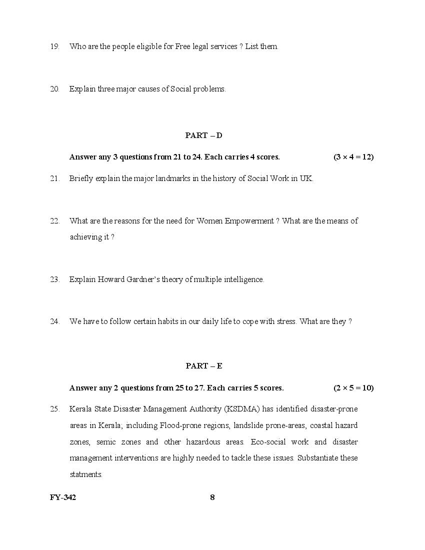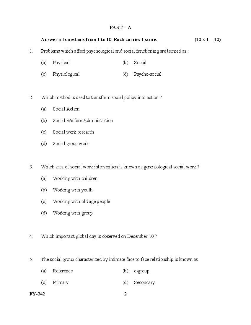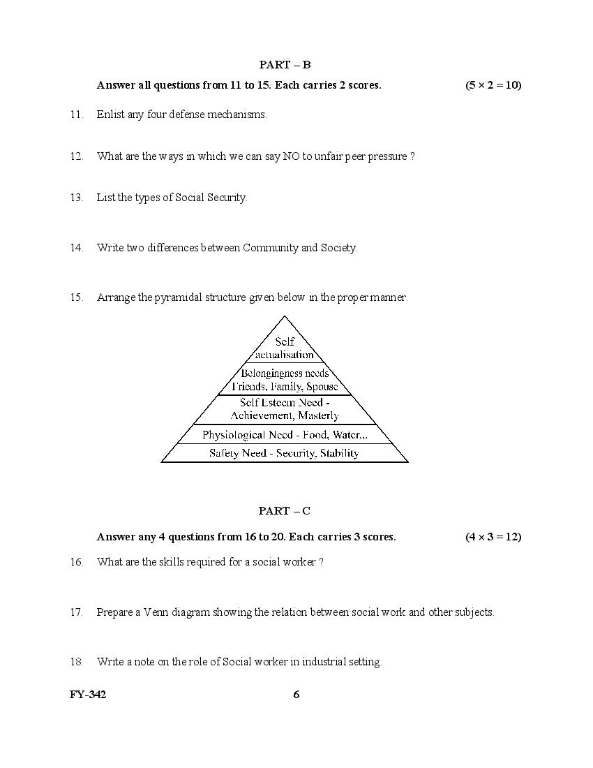 The Kerala Previous Year Question Paper for Class 11 (Plus One) Social Work is as follows.