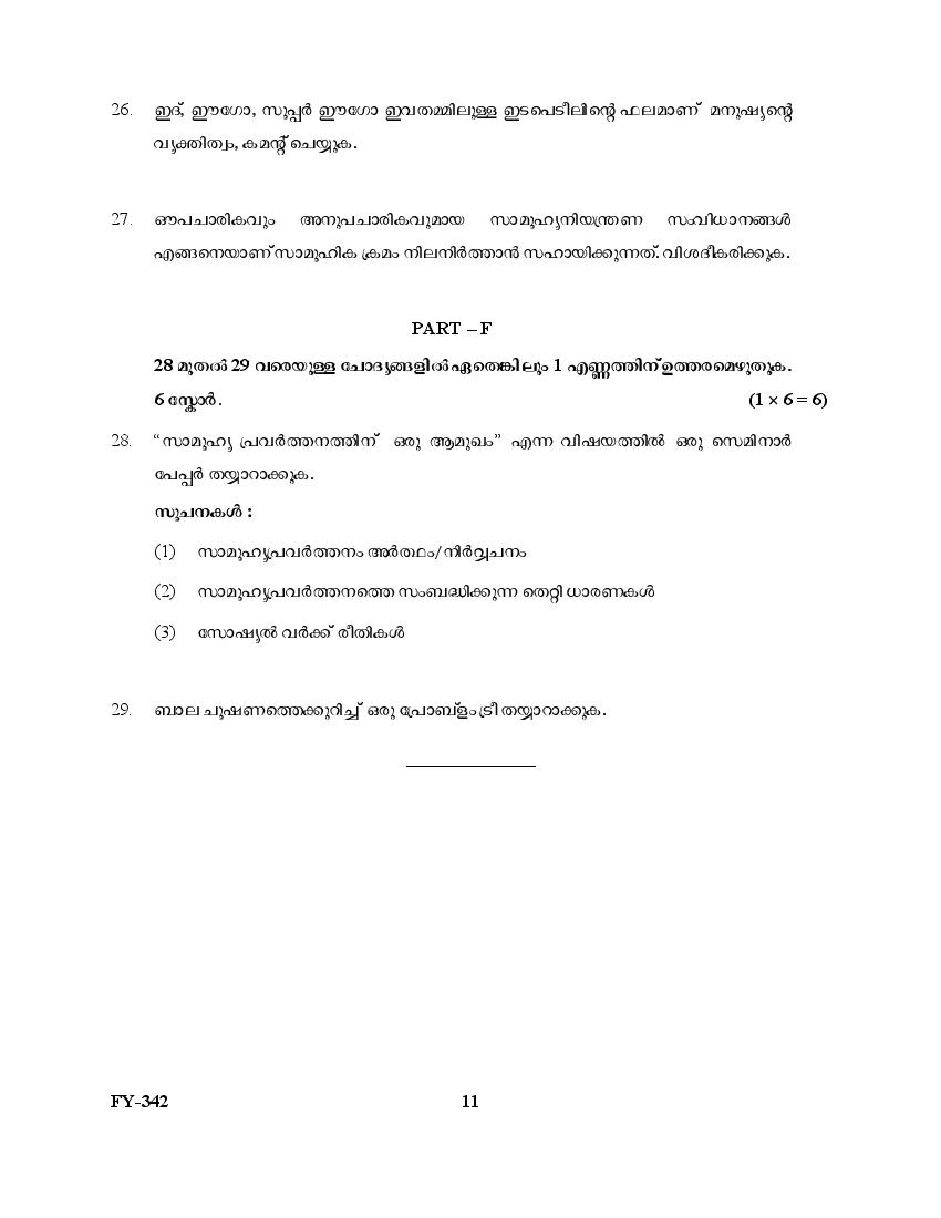 | Education Material Here | Kerala Board Exam Question Paper for Class 11 Social Work 2025 |