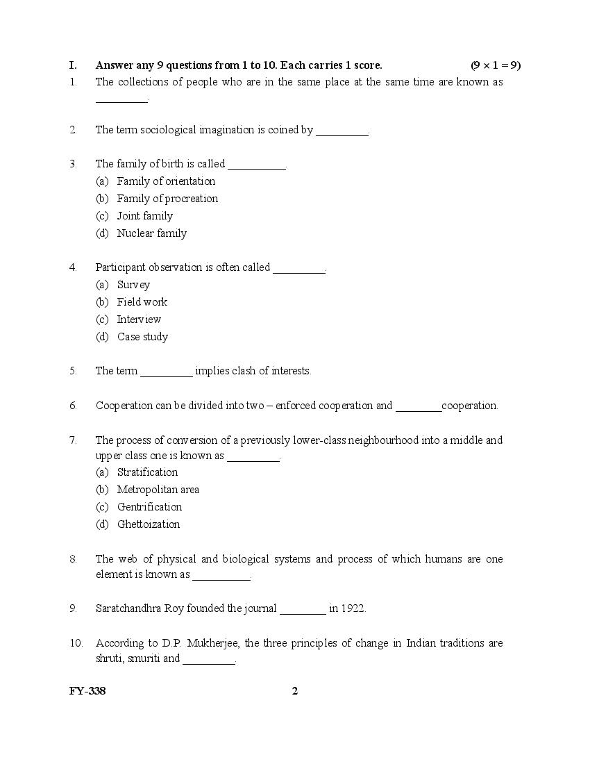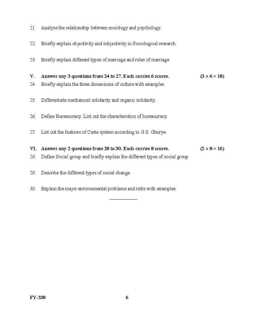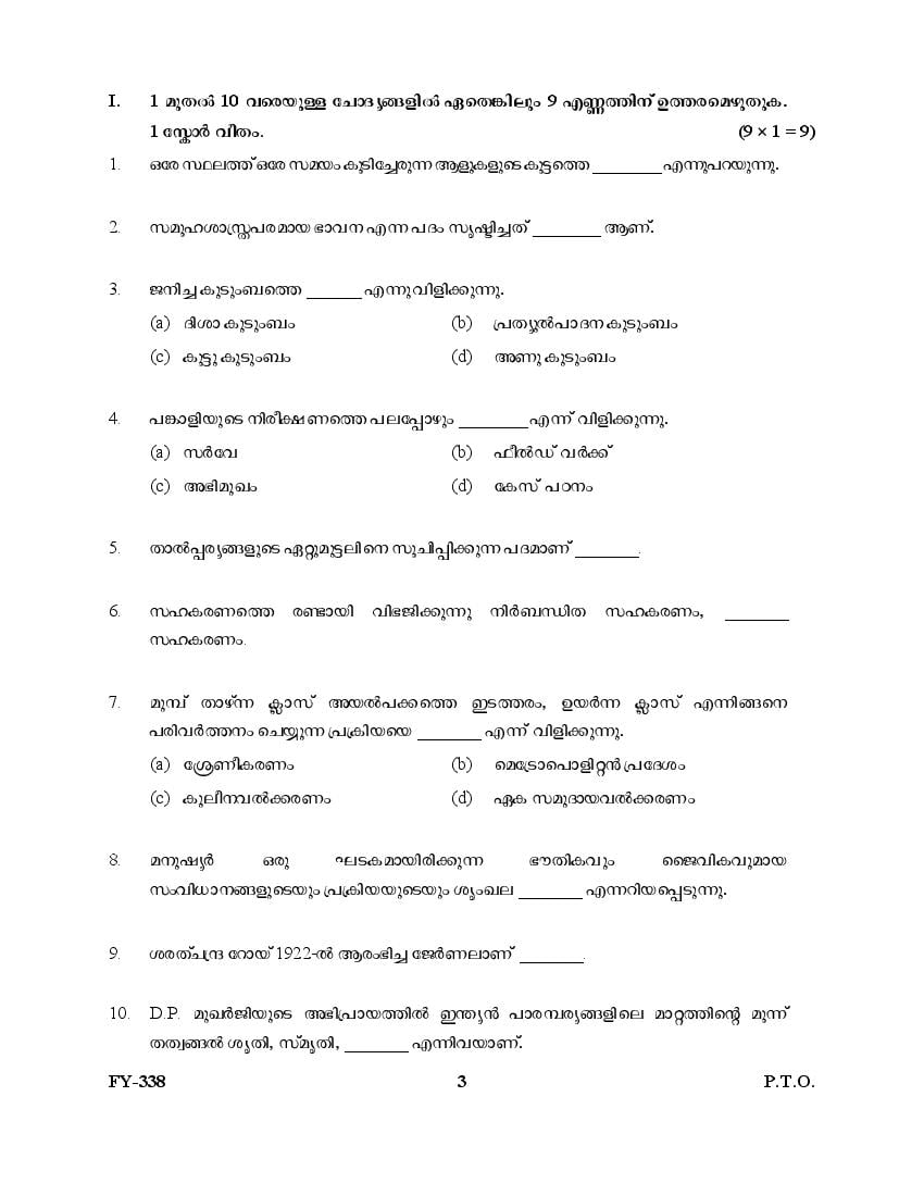 The Kerala Previous Year Question Paper for Class 11 (Plus One) Sociology is as follows.